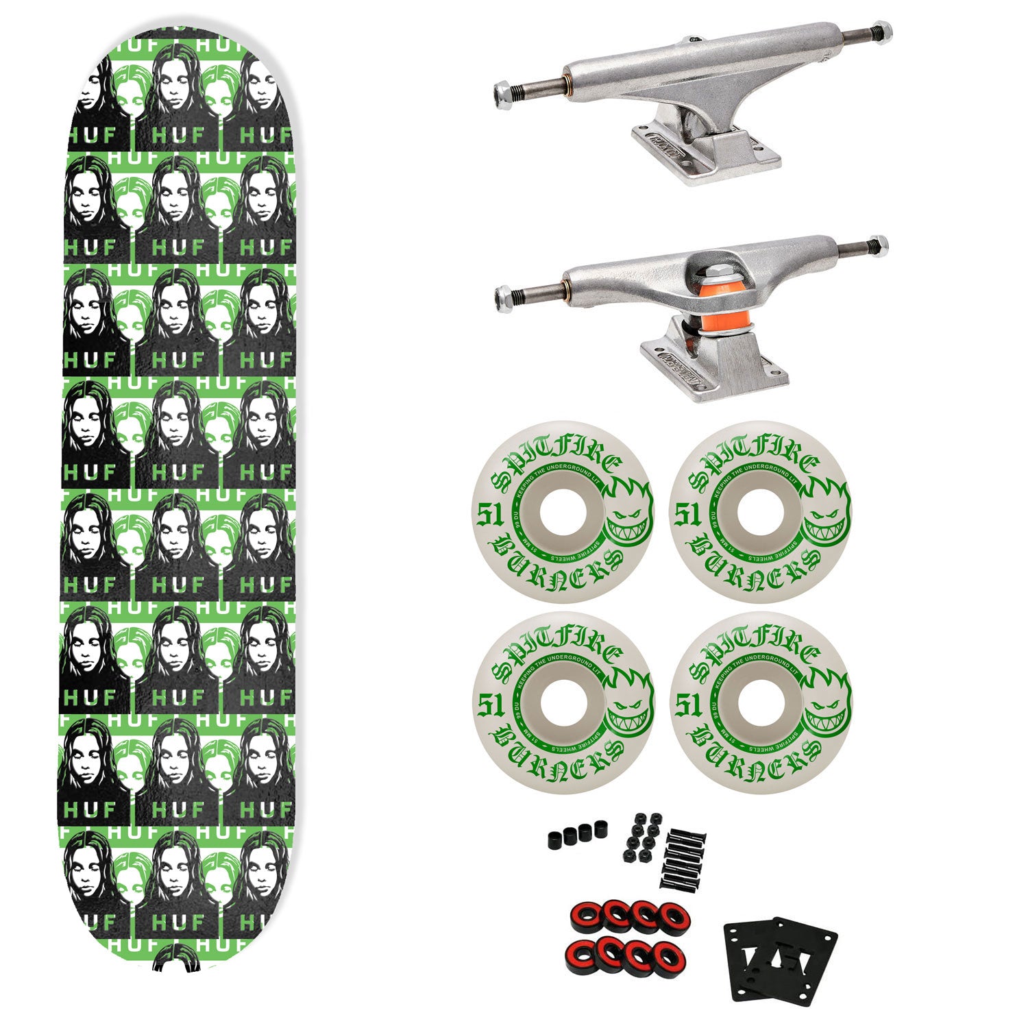 Includes hand selected components to make a premium complete that even the pros would be proud of. Top tier parts from leaders in the industry. Includes a Huf Colab Deck, Independent Trucks, Spitfire Wheels, Abec 5 Bearings, Black Diamond Griptape, 1" Hardware and Risers.