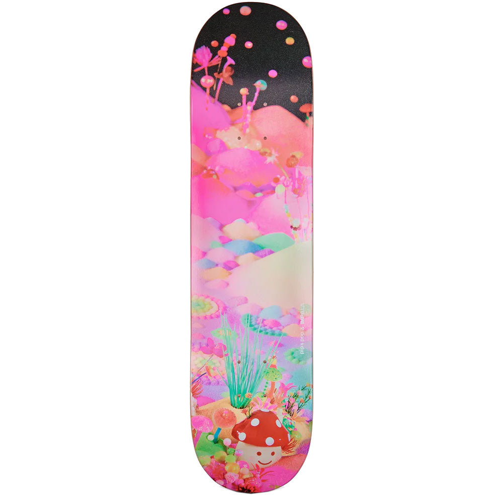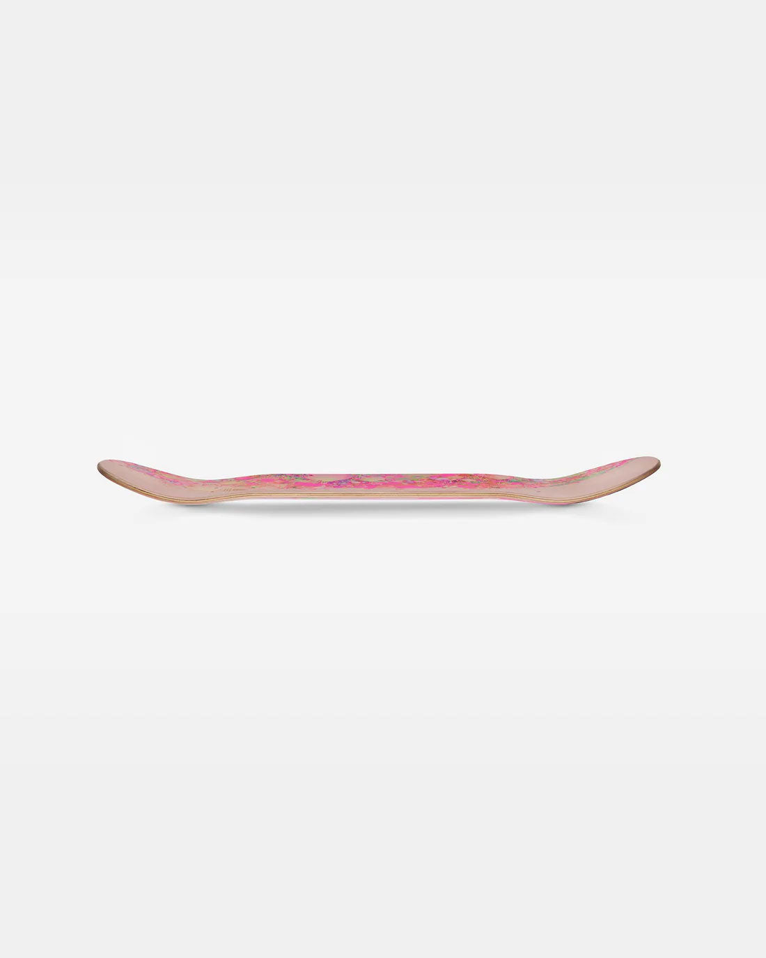 A premium construction skateboard deck by Impala featuring an art collaboration with Pop & Pop. Resin-7 Canadian Maple construction. Colorful sparkle powder shimmer finish. Measures 7.75" x 31" with a 13.8" wheelbase. Full shape, medium concave.