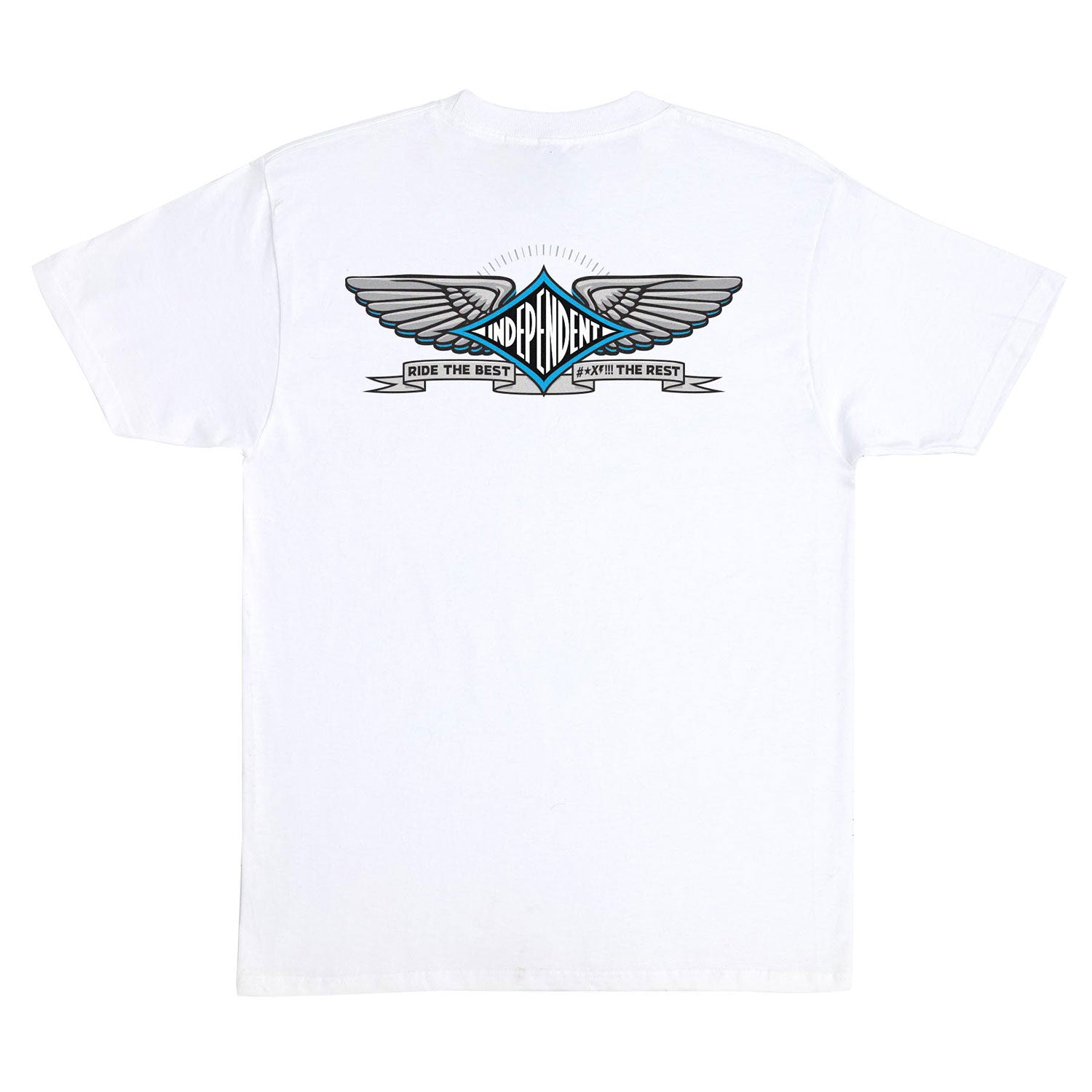 The Independent RTB Pilot men's regular fit short-sleeve t-shirt features small front and large back Independent RTB Pilot artwork printed in soft hand ink.