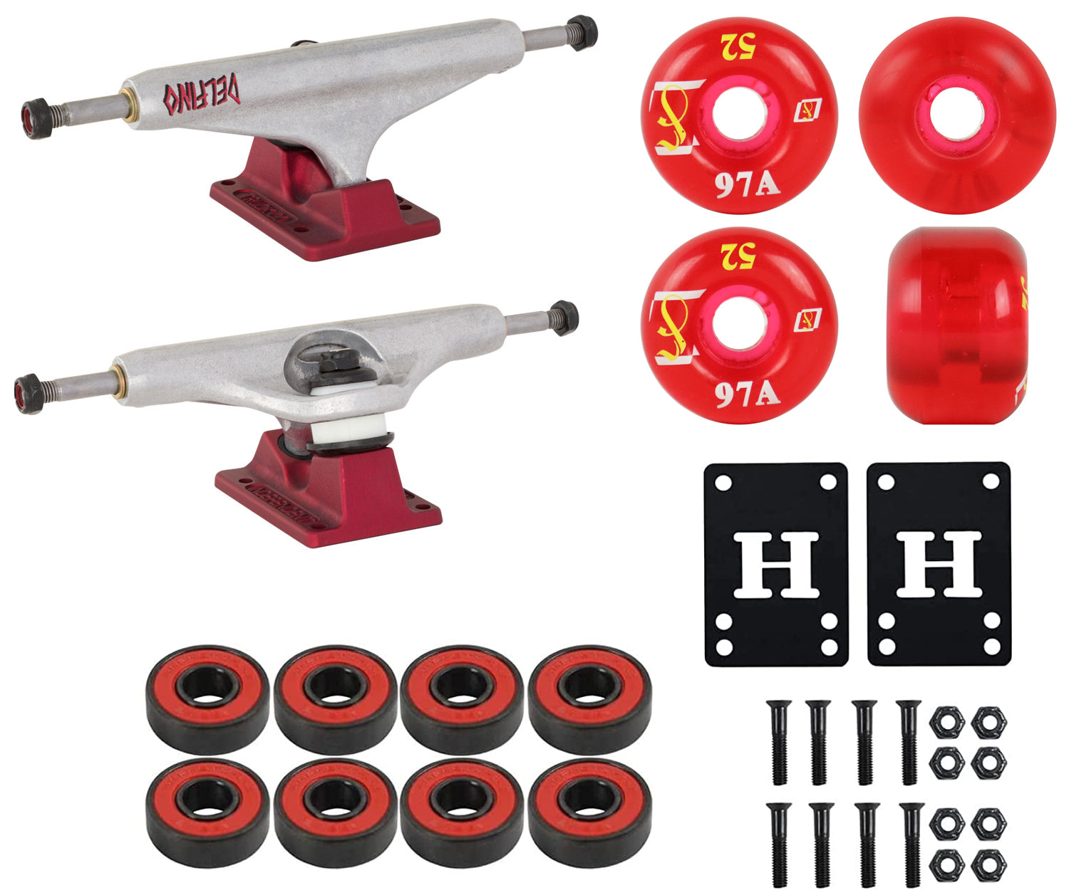 Independent Skateboard Trucks 159 Hollow Delfino + 52mm Wheels, Abec 5 Bearings