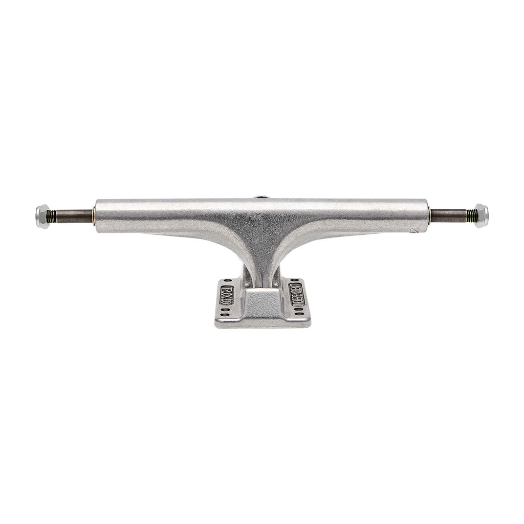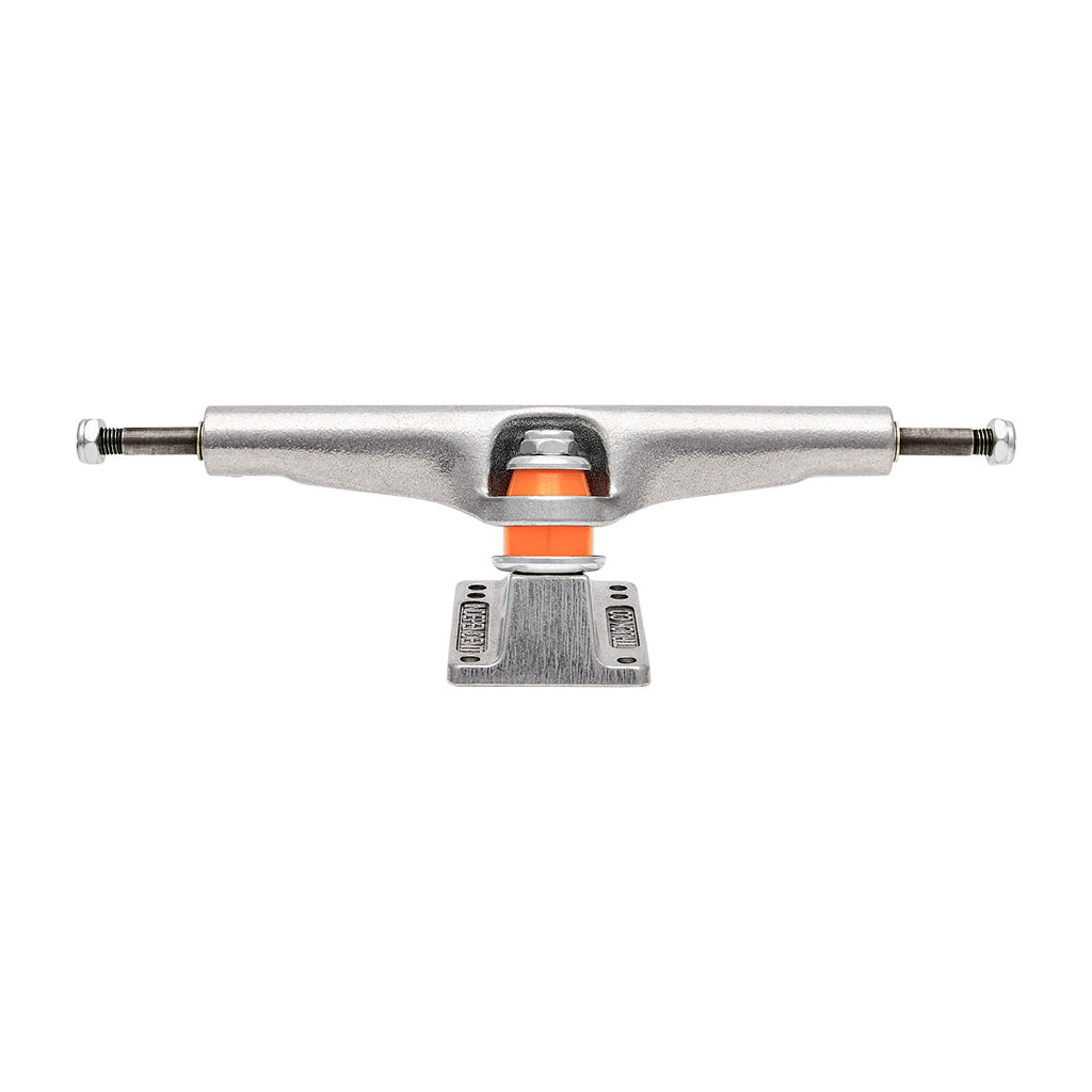 Independent Trucks 215s feature a retro Stage 4 style single wing hanger design and are great on wider boards from 9.5 to 10.5 inches. 55mm tall for optimal performance and wheel clearance with wheels 56mm and under. A356 T6 Aluminum Hanger & Baseplate. The best lightweight aluminum alloy heat treated to T6 condition for strength, durability, and grind feel. SCM435 Chromoly Steel Axle. Highest quality and durability available. Grade 8 Kingpin. 215s feature 6 hole universal baseplate with old and new school mounting pattern.