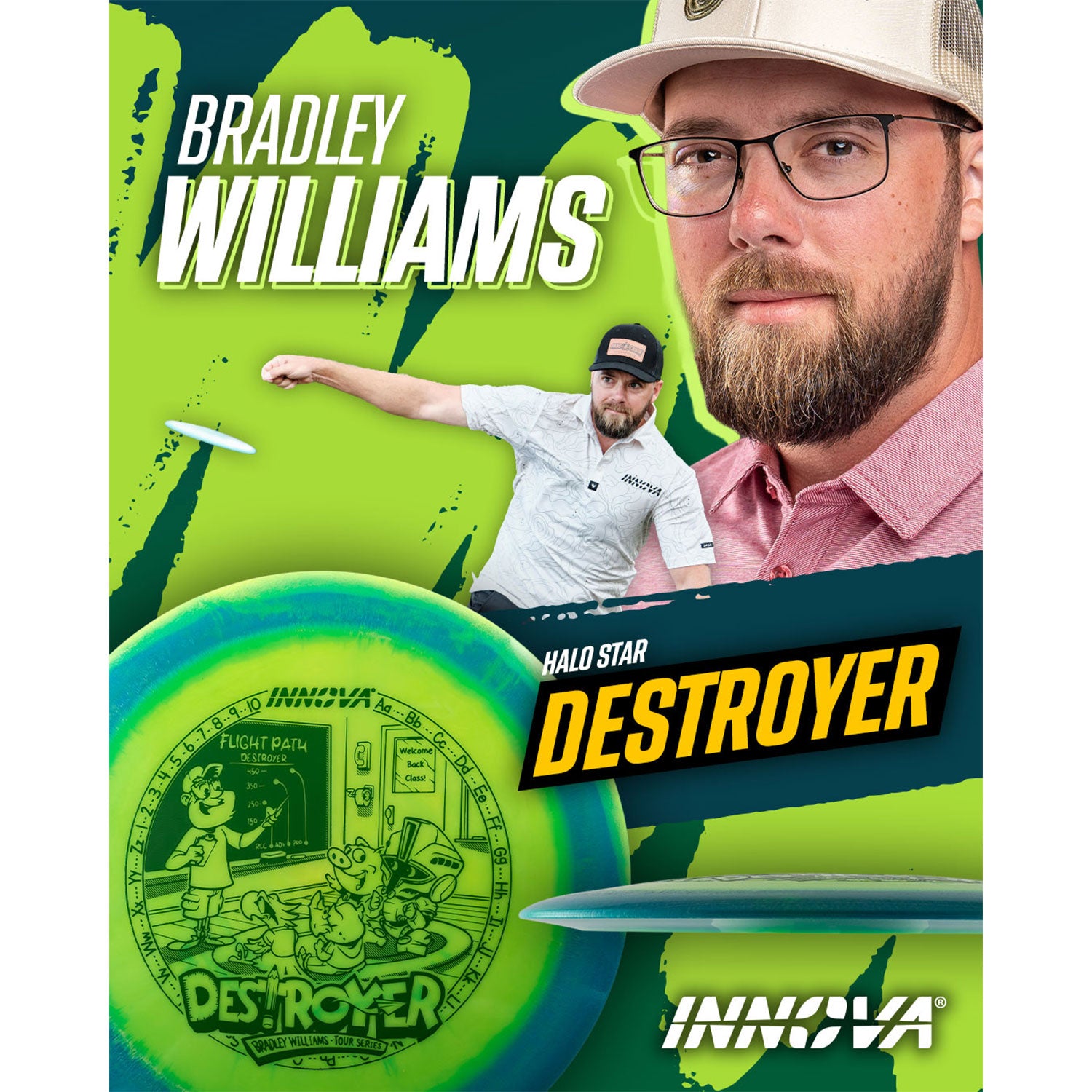 Innova Disc Golf Bradley Williams Tour Series Halo Star Destroyer Distance Driver 12/5/-1/3 Blue Yellow/Grey 157 grams