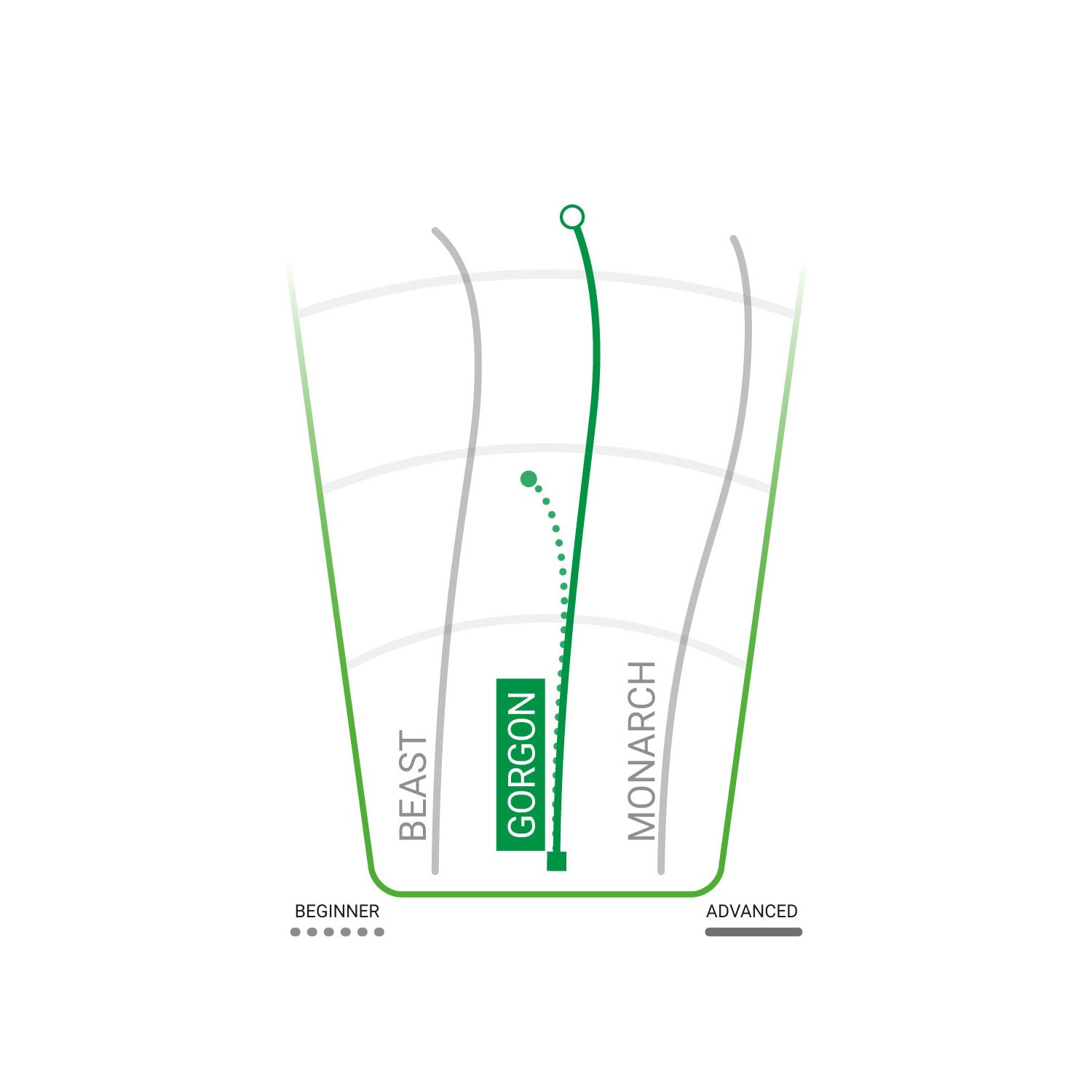Introducing the Gorgon, a disc that merges the feel, precision, and ease of a fairway driver with the reach of a distance driver. Its flight? Arrow-straight glide with a steadfast fade, mirroring the Gorgon's unwavering gaze.