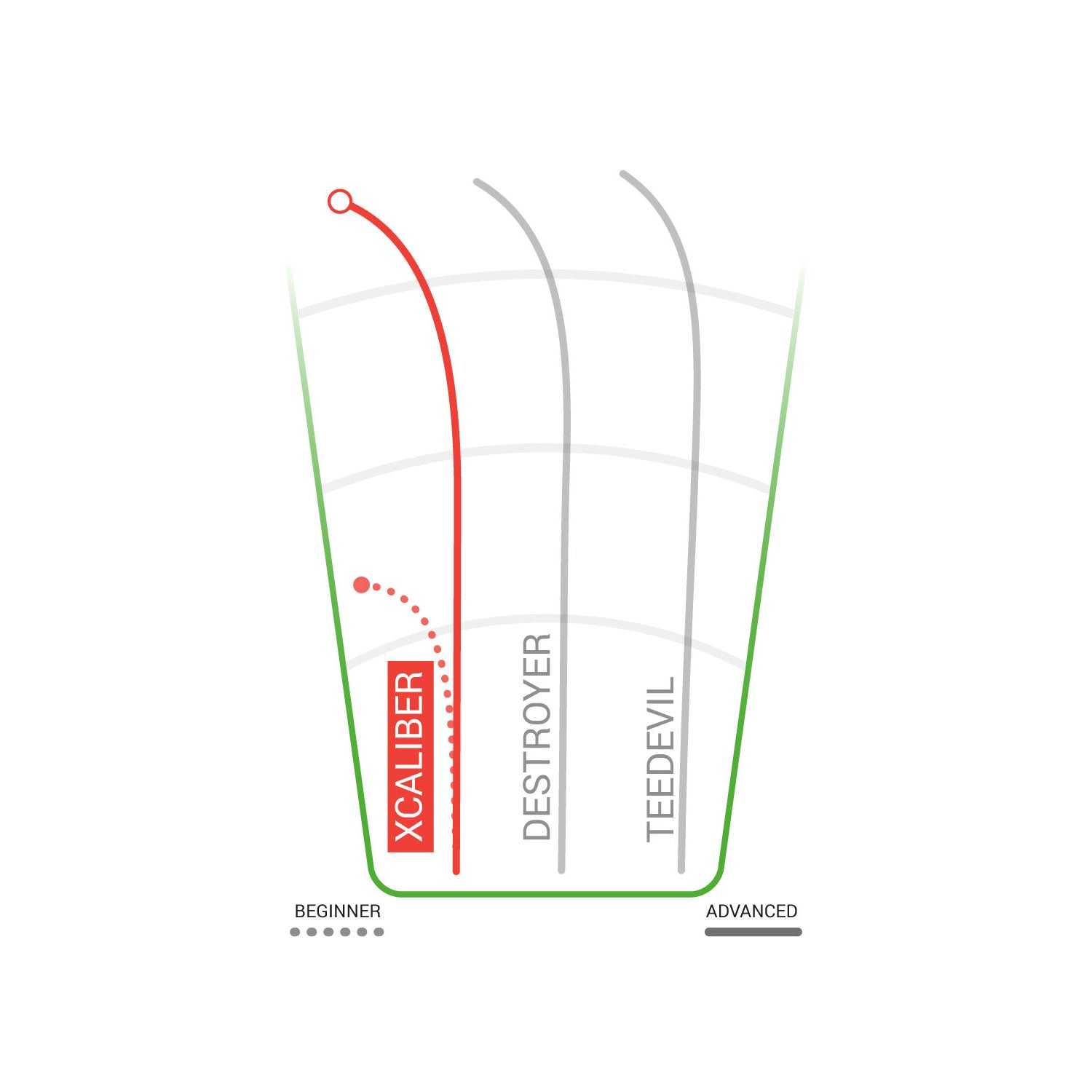 The Champion line is produced with a hi-tech plastic that provides outstanding performance and durability. Champion discs are distinguished by a beautiful clear appearance. Designed for professional players, Champion line discs are usually a little firmer and more stable than the same model in other plastics. Whether used in heavily wooded situations, or on extremely rugged courses, our Champion line plastic will continue to perform predictably and avoid damage better than any other plastic. The XCaliber is for those who have got to have the biggest and the baddest. Extremely fast with glide and stability. This is the one for confident bombs in windy conditions.