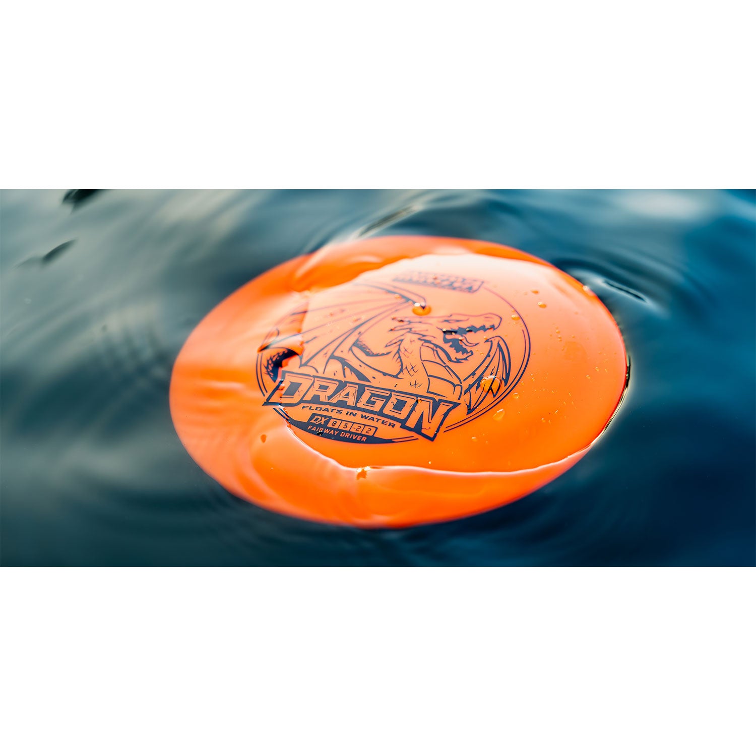 The Dragon is a lightweight driver that floats in water, made with extra grippy plastic. The DX line offers the widest selection of models and weights. These discs are affordably priced and provide an excellent grip in a variety of weather situations. DX discs wear in with usage and over time will eventually take on new and varied flight characteristics. Many top pros carry several DX discs of their favorite models to provide different flight patterns for different situations.