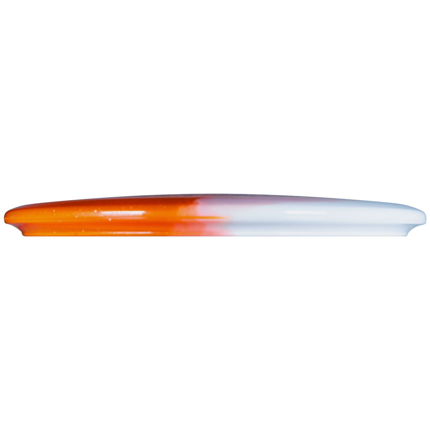 This Roc3 features "Duo", Innova's newest molding process. Every disc is a unique blend of white Star and orange Metalflake materials forming one hauntingly beautiful disc. Then, you add the scary-oversized XXL Halloween Roc stamp and now you have a treat for collectors and players.