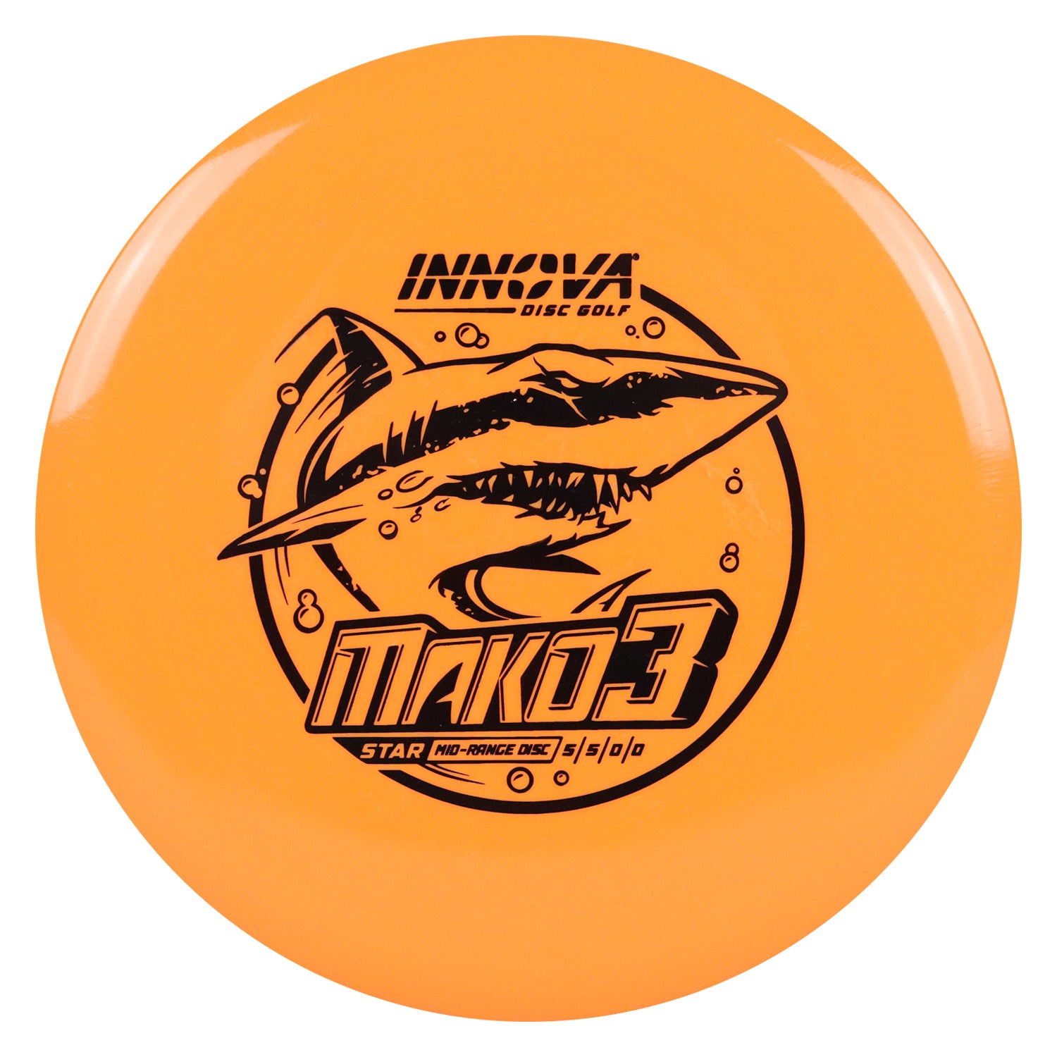 The Mako3 is the faster, low profile version of the remarkably straight flying Innova Mako. The Star line is created with a special blend of grippy, resilient polymers. Star plastic offers the same outstanding durability of our regular Champion plastic, plus improved grip like our Pro plastic. Star discs have the same flight characteristics as Champion discs, but are slightly less firm. High performance, longevity, and superior grip make Innova Star line discs a great choice for your game.