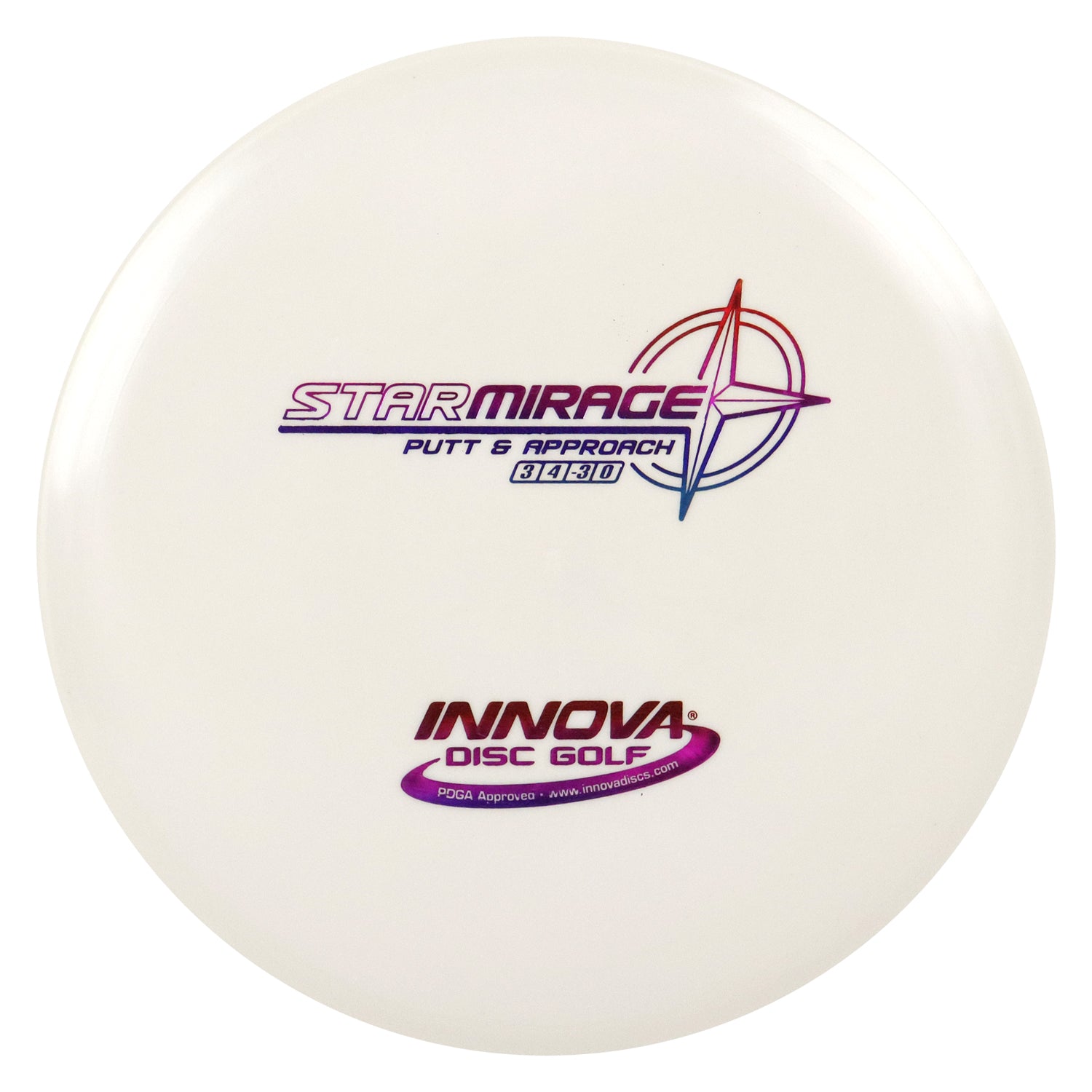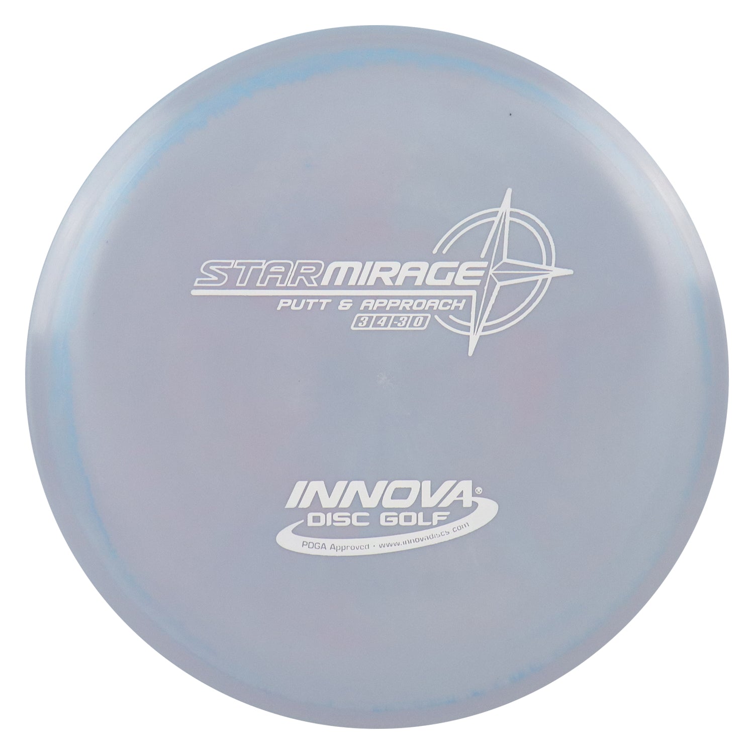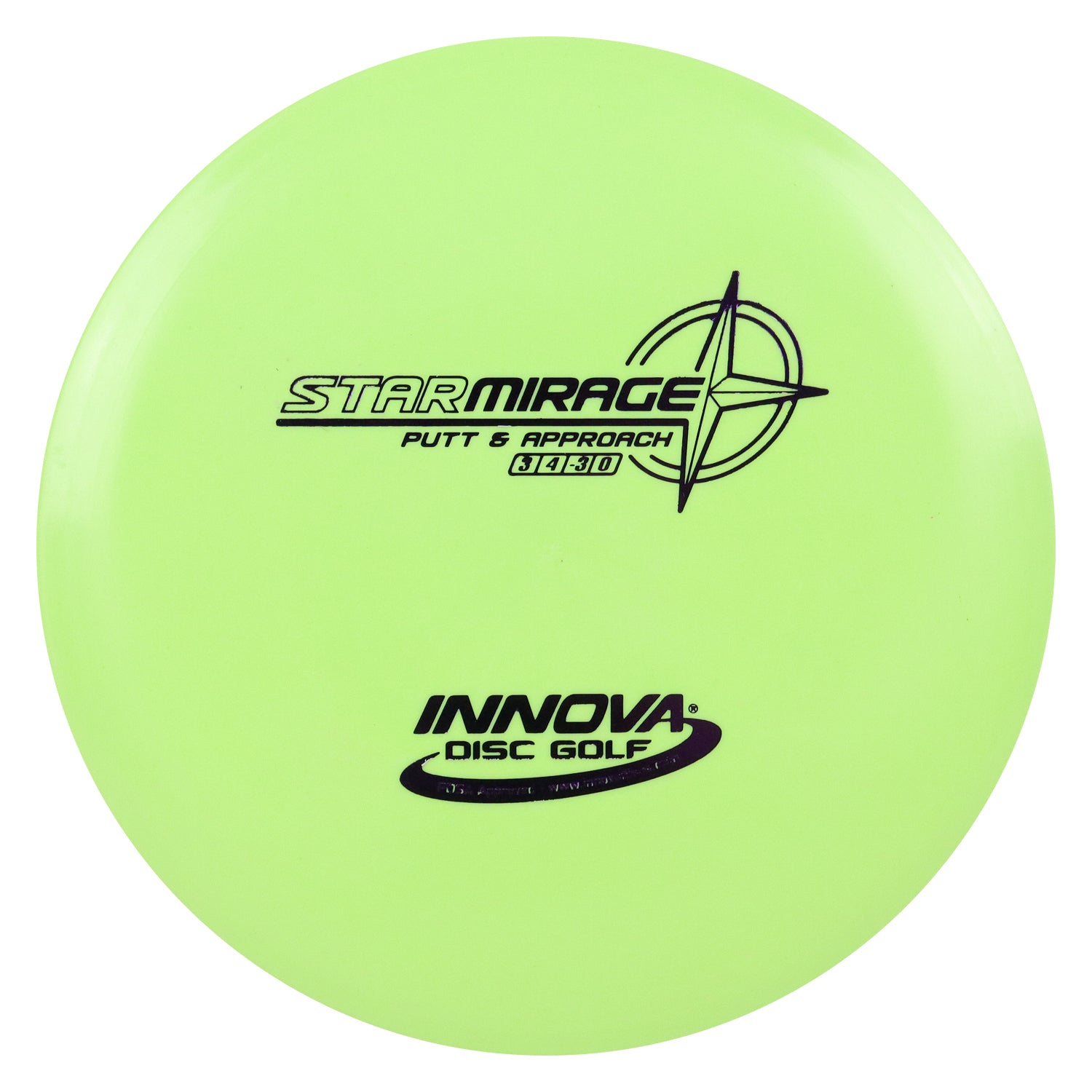 Seeing is believing. The Mirage has lots of glide with a smooth gentle landing. The Star line is created with a special blend of grippy, resilient polymers. Star plastic offers the same outstanding durability of our regular Champion plastic, plus improved grip like our Pro plastic. Star discs have the same flight characteristics as Champion discs, but are slightly less firm. High performance, longevity, and superior grip make Innova Star line discs a great choice for your game.