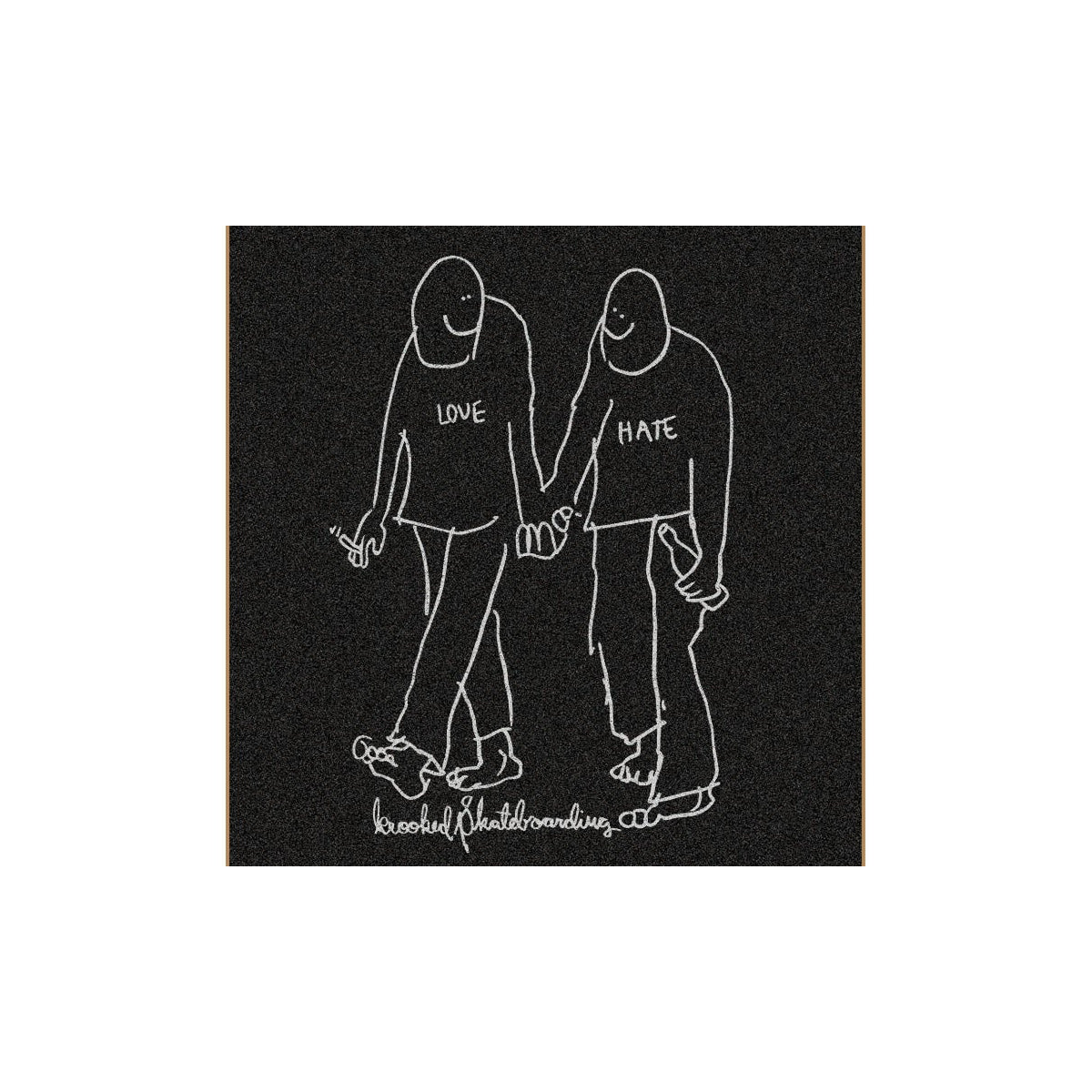Krooked skateboards grip tape. Measures 9" x 33". Standard black grip with Love Hate graphic by Mark Gonzales.