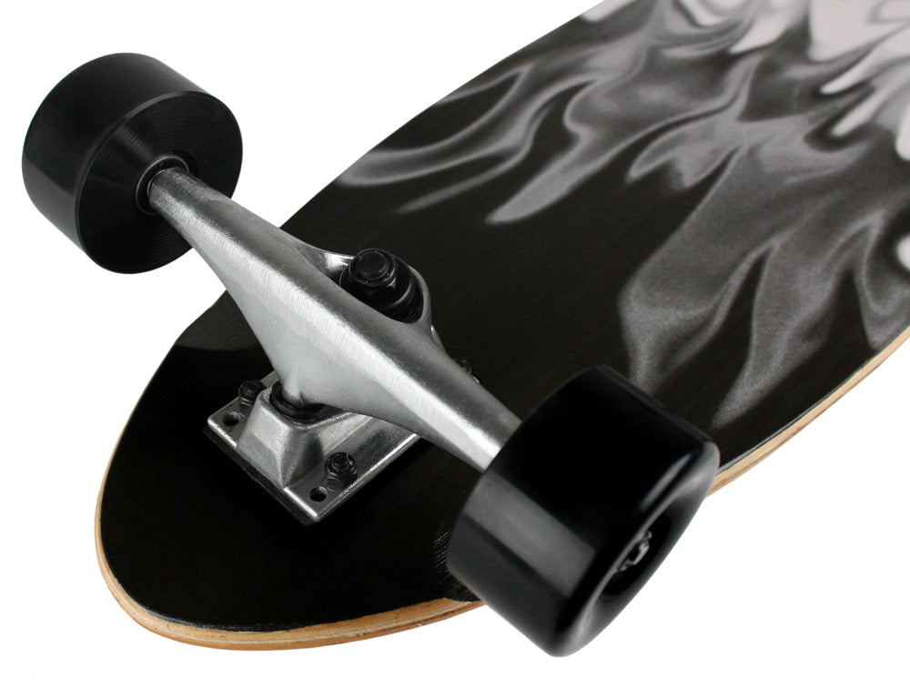 Krown Pintail longboards are a perfect option for someone looking to get their first longboard. This pintail longboard is a classic, easy to ride shape. The board is flat with a small nose and pin tail. Measures 9" x 43" and is constructed with 10-Ply Maple. Featuring 7.0 Aluminum Trucks, 70mm 78A Wheels, Abec 5 Bearings, Black Griptape.