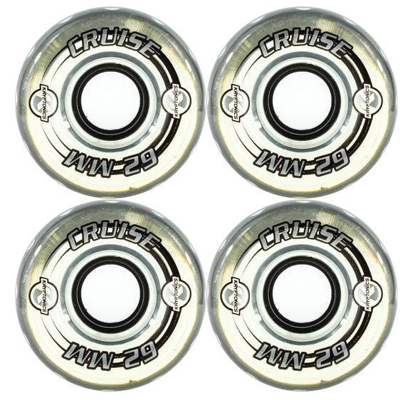 Kryptonics offers the best time-tested wheels on the market. Year after year they have the best skateboarding formulas on the market. This listing inclues a set of 4 KRYPTONICS CRUISE CLEAR 62MM 78A Wheels.