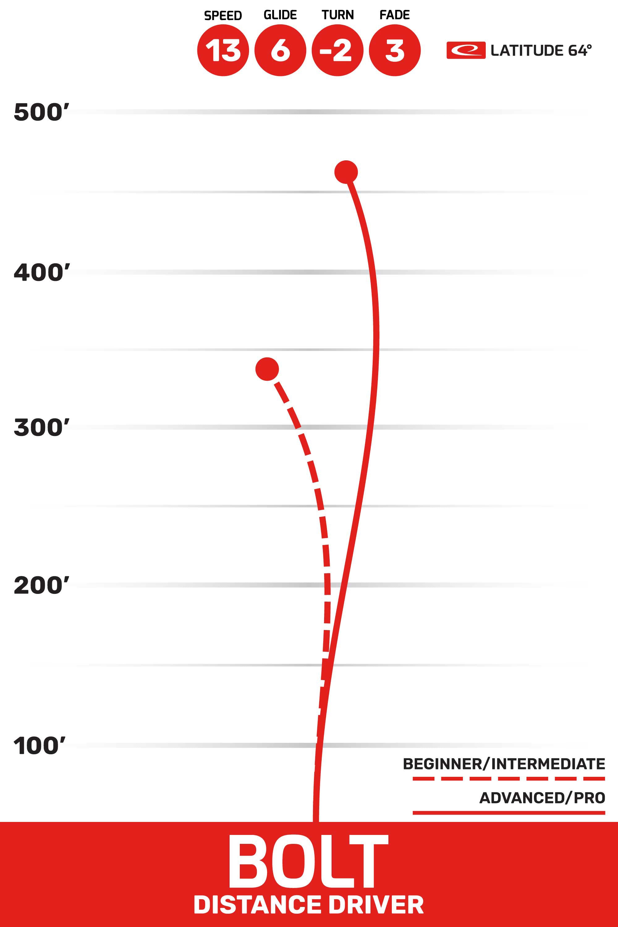 This is one of our more understable distance drivers. It is almost as fast as a lightning bolt and has an understable flight path with good glide. This is the perfect distance driver for players with slower arm speed that want to throw far. For experienced players with more power, the Bolt can still be useful when fast and understable is what you are looking for.