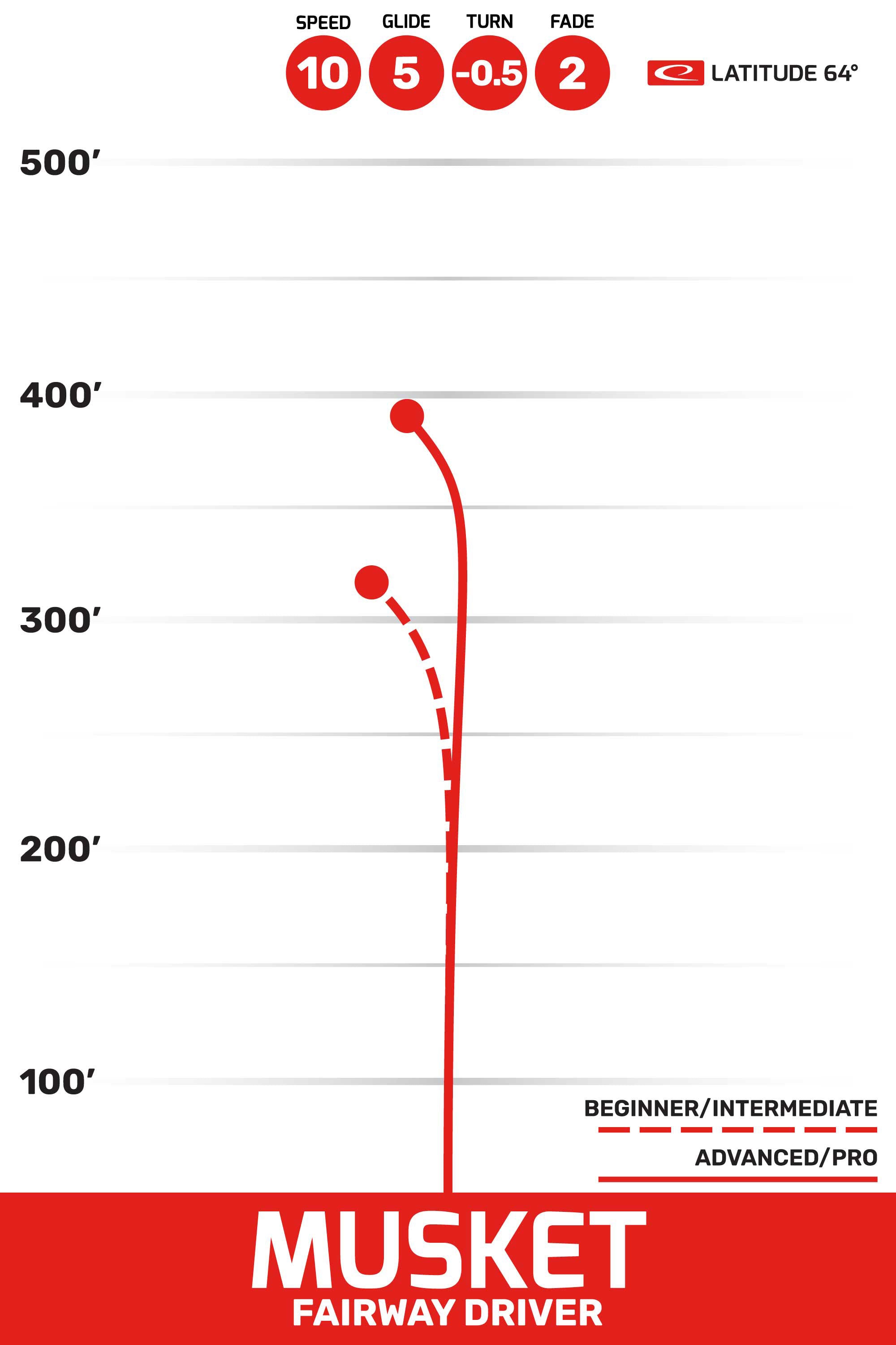 The Musket is a straight shooter. Accuracy and distance do not always go hand in hand, but this speedy fairway driver can give you that little extra firepower and still hold the line. The perfect weapon when the fairway is narrow and the basket is far away.