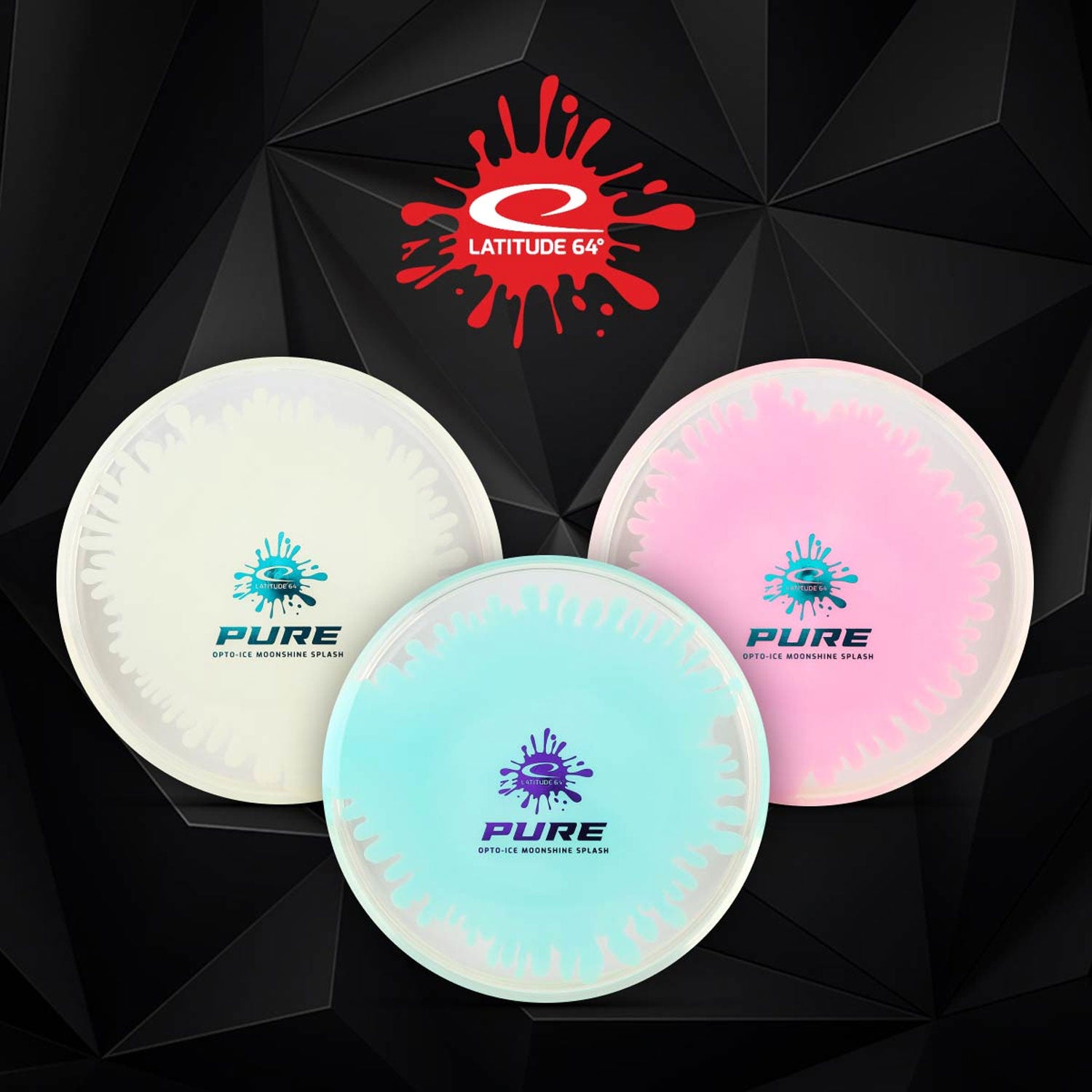 Latitude 64 Disc Golf Opto-Ice Splash Moonshine Pure Putter 3/3/-1/1 Turquoise Glow/Purple 173 grams