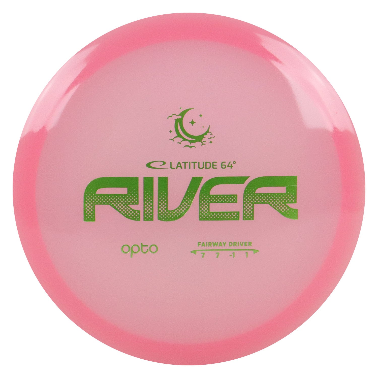 Latitude 64 Disc Golf Opto Moonshine River Fairway Driver 7/7/-1/1 Pink Glow/Olive 175 grams
