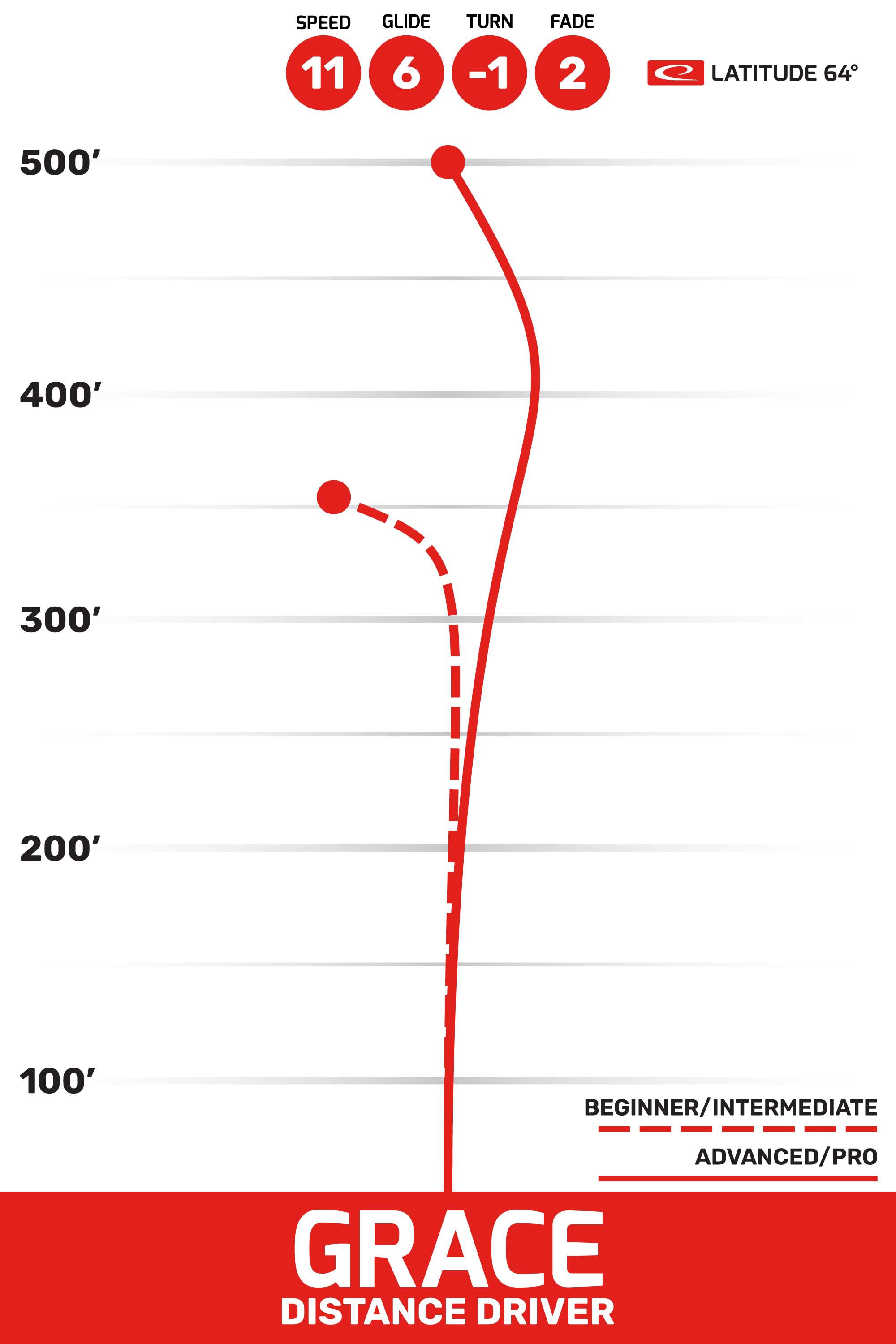 Grace is all about smooth distance. It has the control of a fairway driver, and the distance of a high speed driver. That combined with a neutral flight and great glide makes the Grace a versatile distance driver for the masses. Throw with Grace!