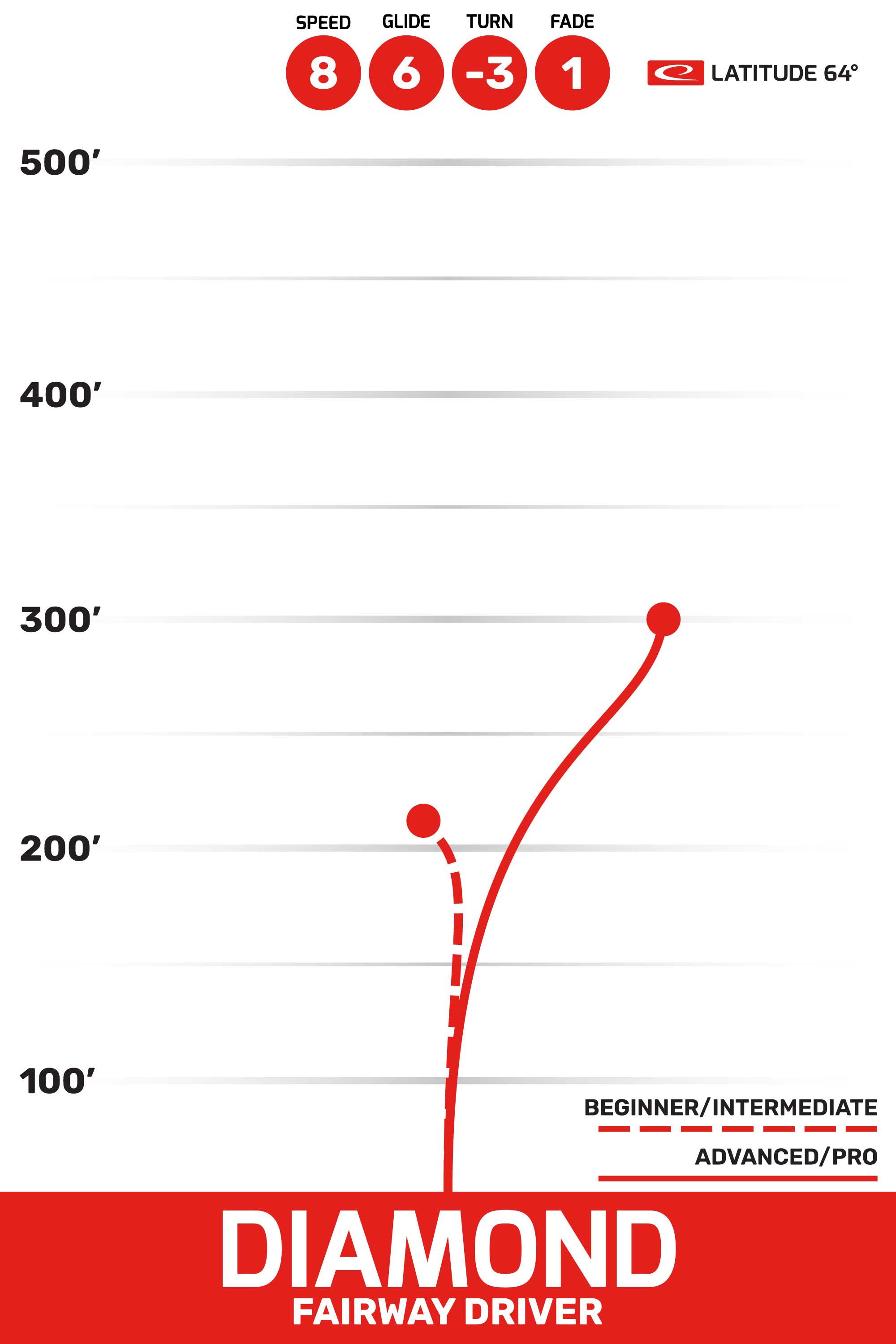 Diamond is the choice of disc for beginners, children and players with moderate arm speed. It is manly produced in lower weights which makes it easy to throw and control. It has an understable flight path with good glide and slight fade.
