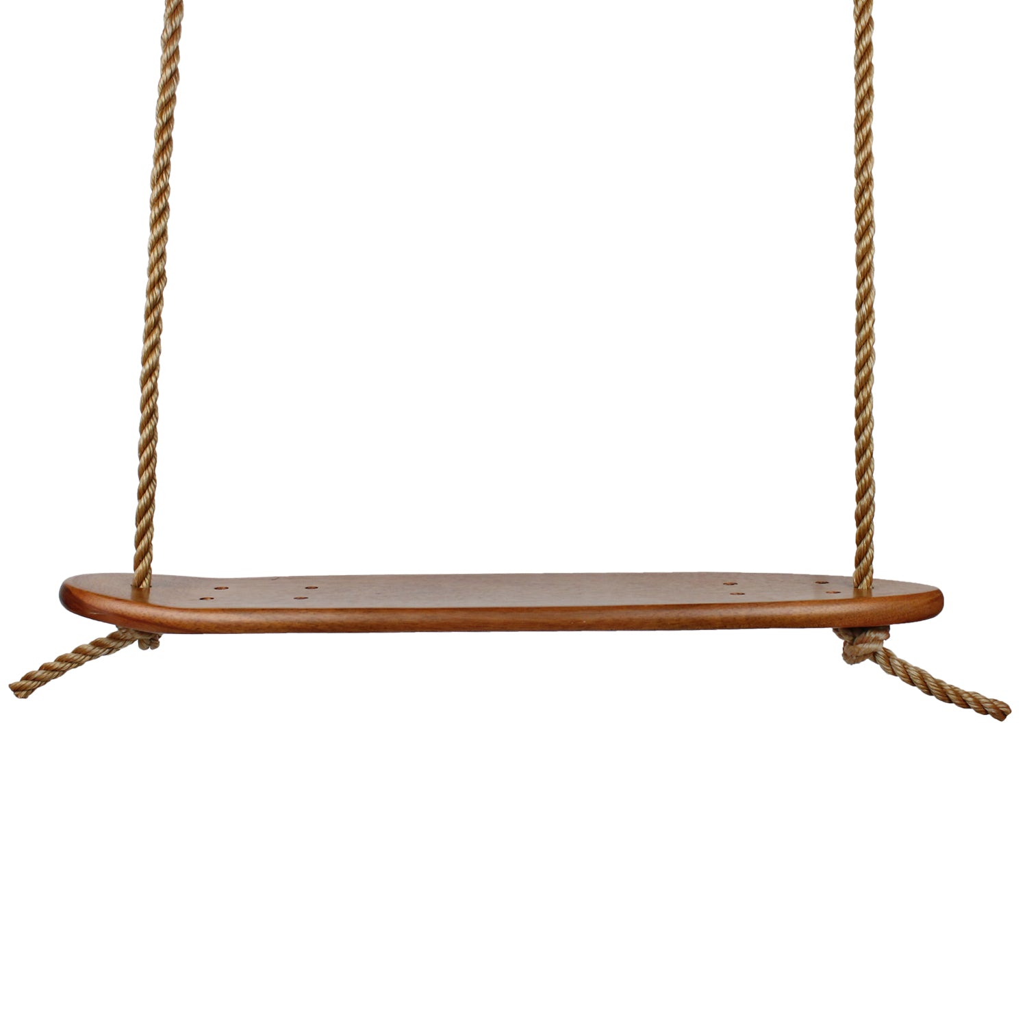 Be the coolest parents in town and set your kids up on this exciting custom swing made from a real skateboard! This kit includes everything you need to outfit your swingset or tree branch with a hip looking skateboard swing, including nylon swing wraps and heavy duty carabineer clips. The Mahogany skateboard deck measures 6" wide by 23" long, with a sitting space between the rope holes of approximately 18" (which fits kids and slim adults alike). Also includes 2 12' lengths of twisted polypropylene rope, 2 1/2" rope clamps, 2 48" nylon wraps, 2 carabineer clips, and a set of instructions.