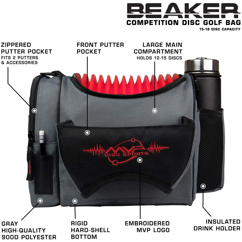 Revamped and ready to hit the ground running, the Beaker V2 is an ideal practice or second bag. Holding 15-18 discs in total, the Beaker V2 hits the sweet spot for carrying capacity, while the high-quality 900D Polyester fabric provides the durability players desire. Complete with an insulated drink holder, hard-shell bottom, and 4 grid track stabilizing feet, the Beaker V2 is a highly portable bag that can handle the elements. Does not include Discs or Waterbottle.