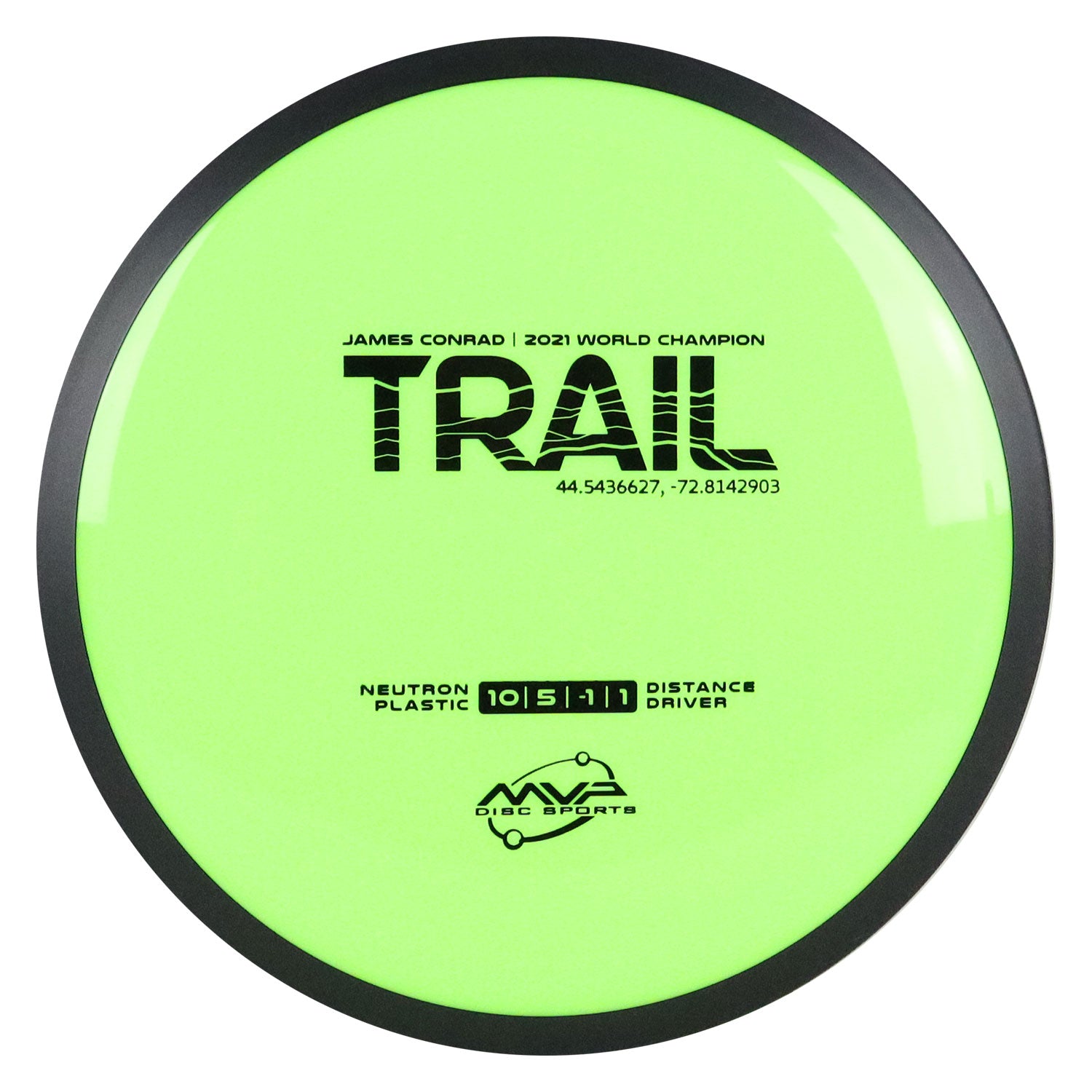 It’s time to experience the next incredible disc in the James Conrad line - and the next staple in our bags - the Neutron Trail! The first official 10 speed driver in the MVP lineup, the Trail is a stable-understable distance driver that, as you might expect of a Conrad disc, excels in hyzer-flip drives and turnovers. Releasing with flight numbers of 10 | 5 | -1 | 1, throwers of all power levels will find the Trail to be an exceptionally responsive driver for a variety of shot shapes, making the Trail a phenomenal disc for all skill levels.