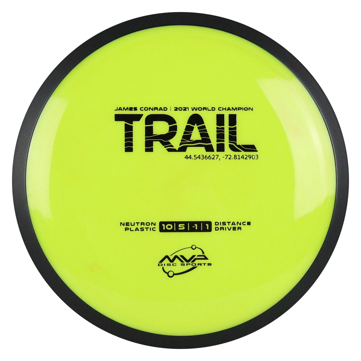 It’s time to experience the next incredible disc in the James Conrad line - and the next staple in our bags - the Neutron Trail! The first official 10 speed driver in the MVP lineup, the Trail is a stable-understable distance driver that, as you might expect of a Conrad disc, excels in hyzer-flip drives and turnovers. Releasing with flight numbers of 10 | 5 | -1 | 1, throwers of all power levels will find the Trail to be an exceptionally responsive driver for a variety of shot shapes, making the Trail a phenomenal disc for all skill levels.