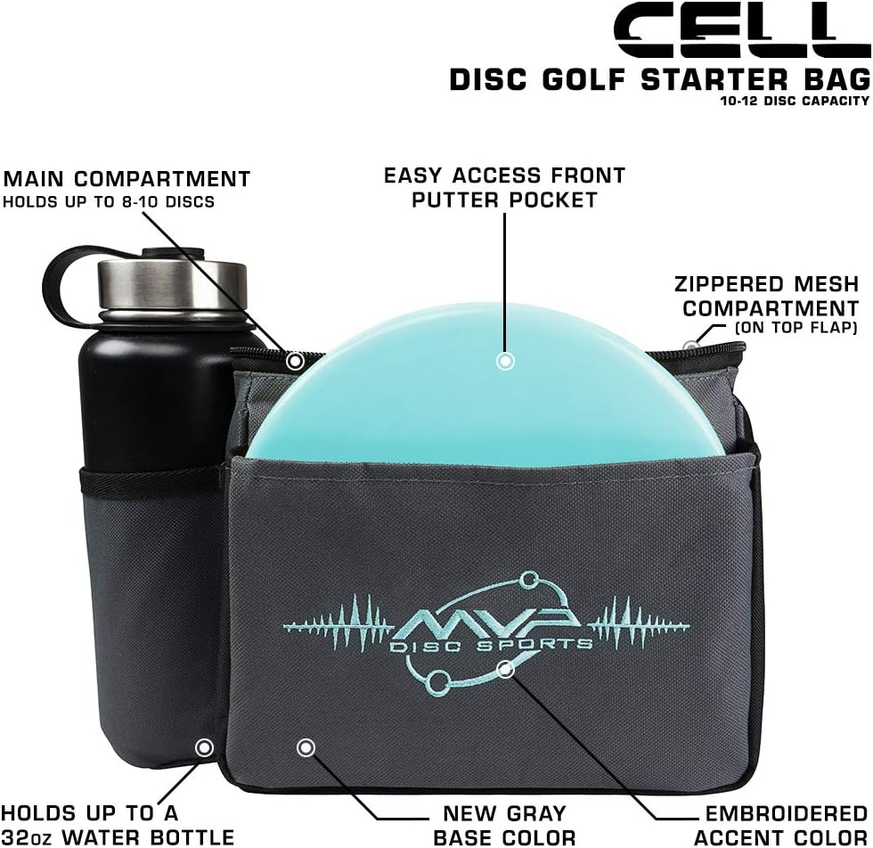 The MVP Cell Bag is the entry-level disc bag built to carry your essentials out on the course. The Cell bag can hold 6 to 10 discs in its main compartment, and 2 more in the putter sleeve and your personal items in an inner mesh pocket. The new Cell bags have been upgraded to more abrasion resistant and water-resistant material. (Discs, Water Bottles, and other accessories are not included)