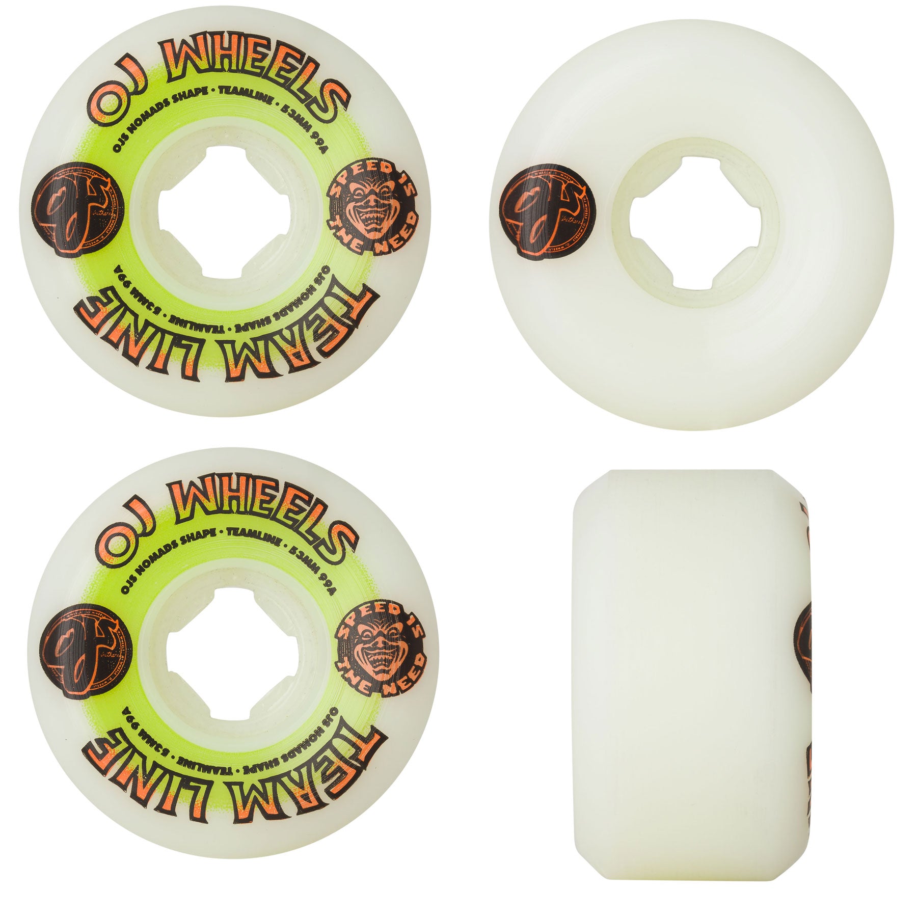 OJ Skateboard Wheels 53mm Team Original Nomads 99A White Green/Orange