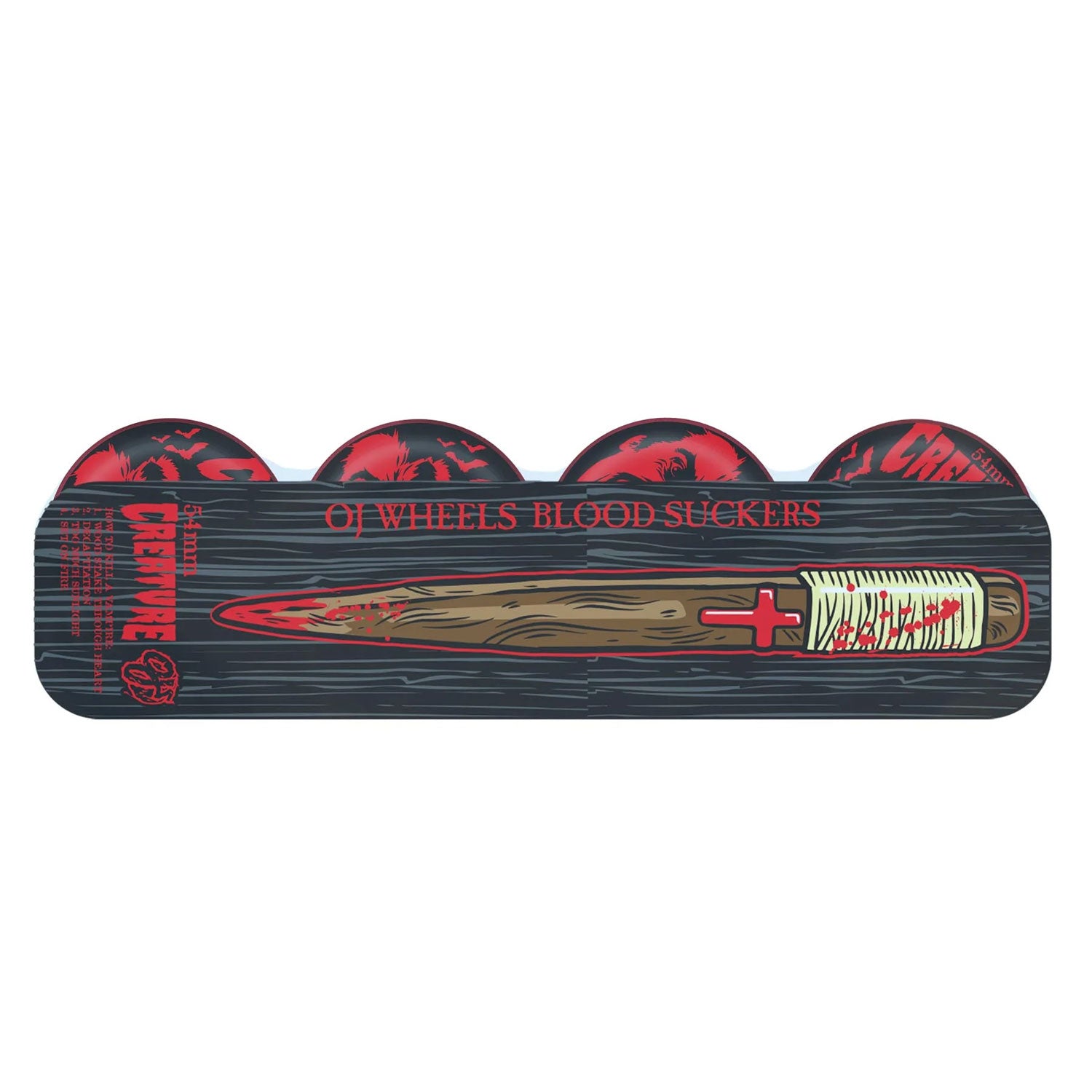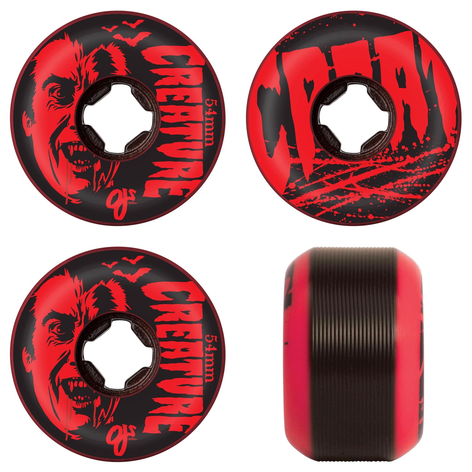 OJ Wheels Creature Skateboards Bloodsuckers How to Kill a Vampire wheels in 54mm, 97a red with black riding surface and OG Hardline shape.