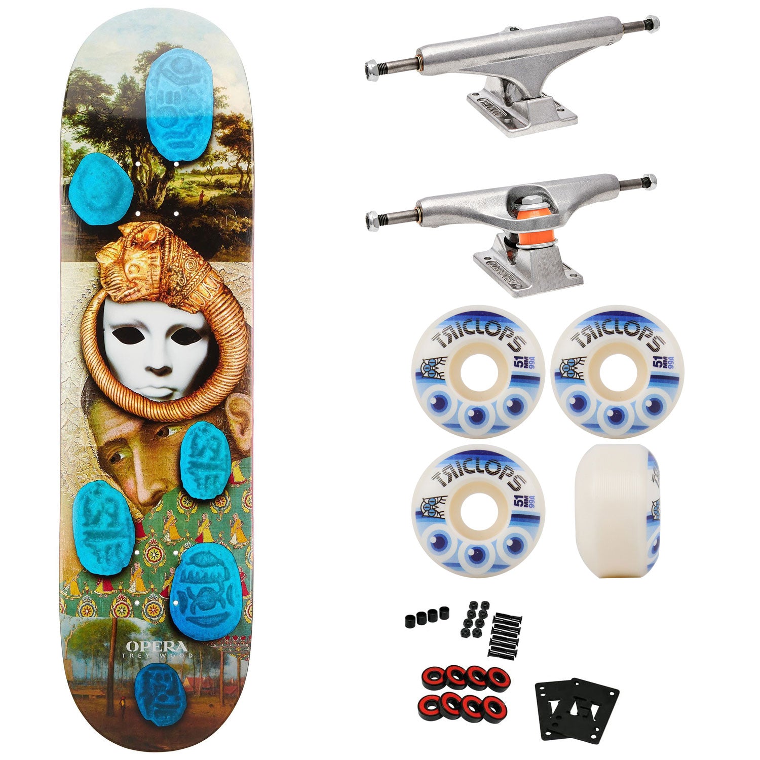 Opera Premium Skateboard with Indy Trucks, Triclops Wheels - 8.25" Trey Woods Curtain Call