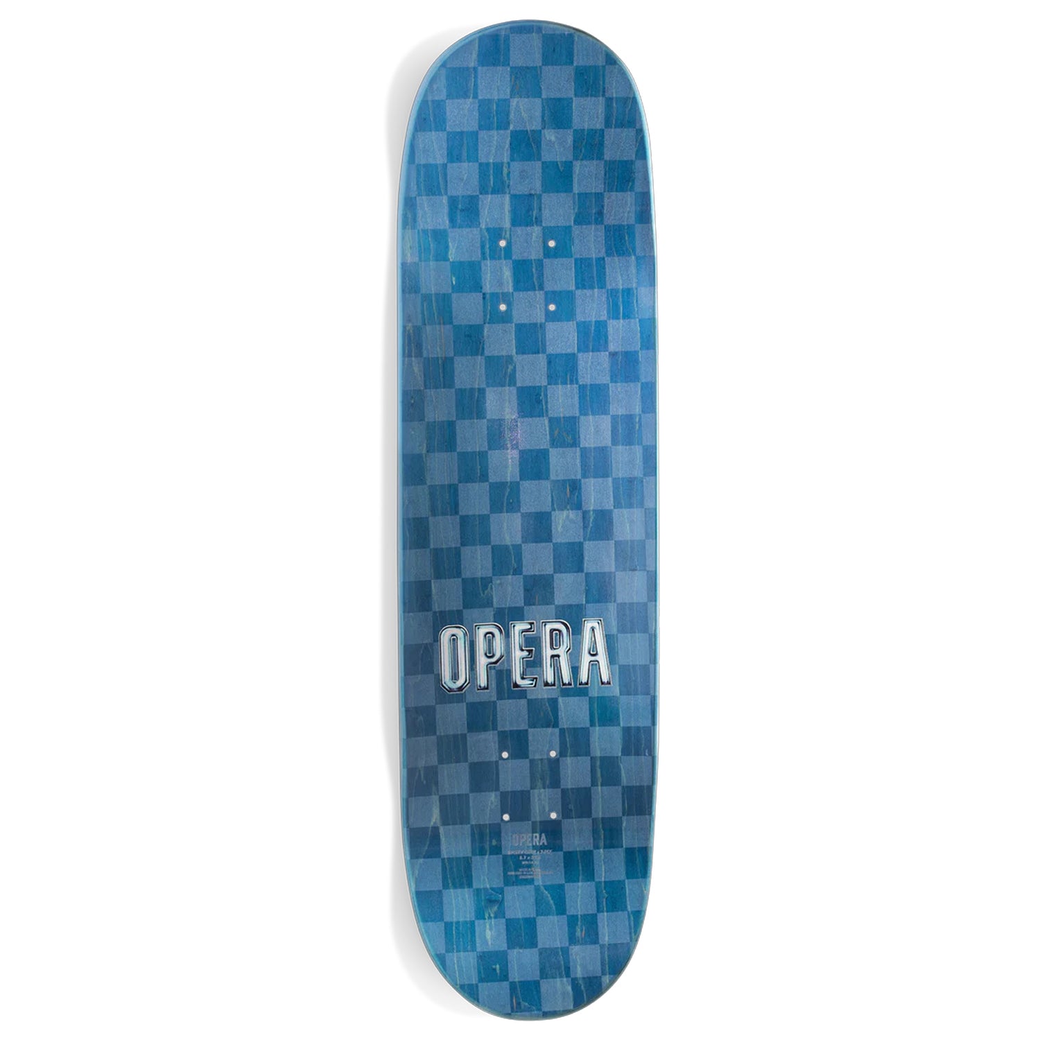Opera Skateboard decks are made with 7-ply 100% North American Maple with Epoxy Glue. Individually Pressed. Stronger than industry 7-ply. Strong pop. Long deck life. This board measures 8.7" x 32" with a 14.5"::15" wheelbase.