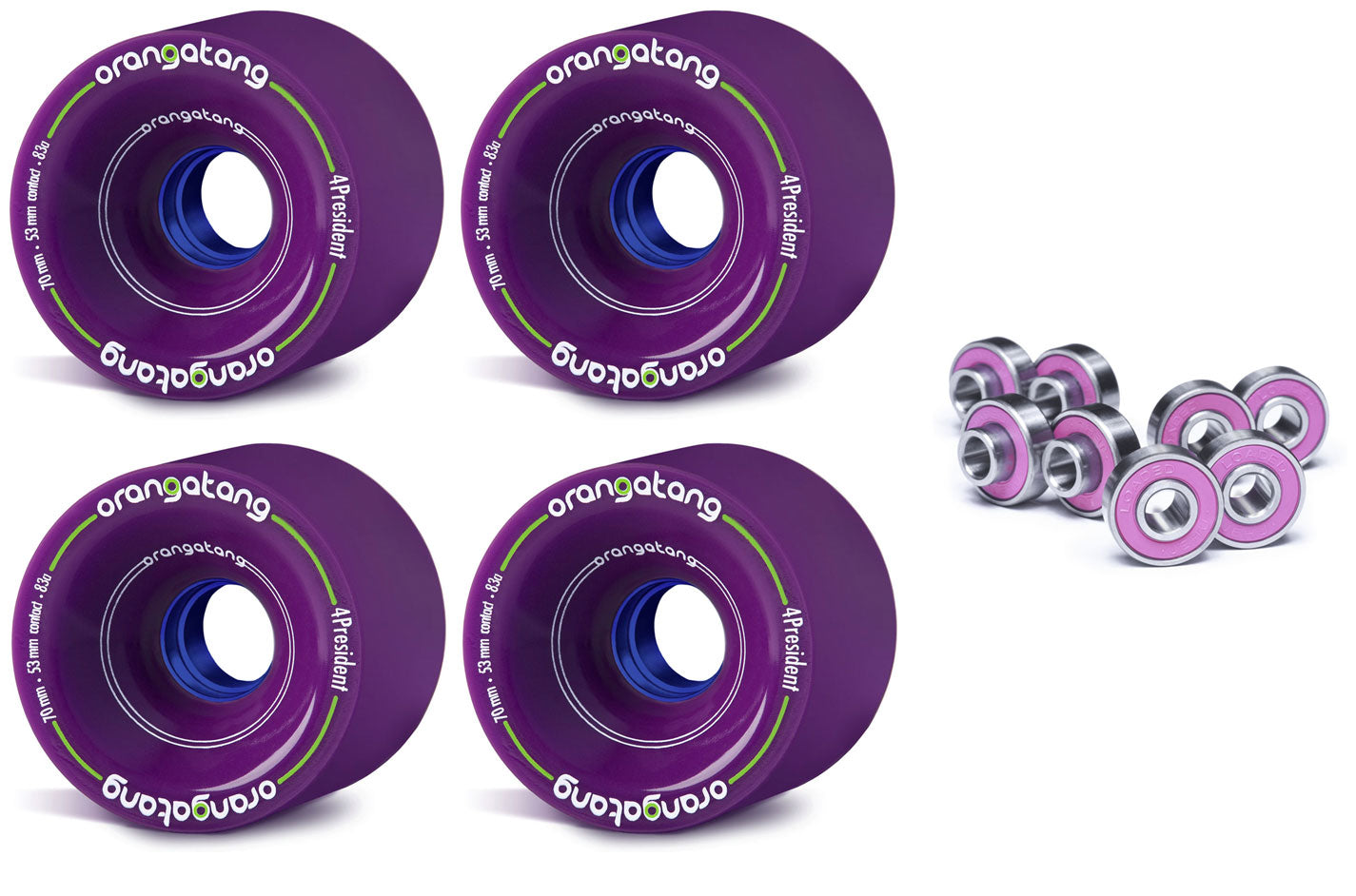 Orangatang Longboard Wheels 4President Purple 70mm 83A with Loaded Jehu V2 Bearings