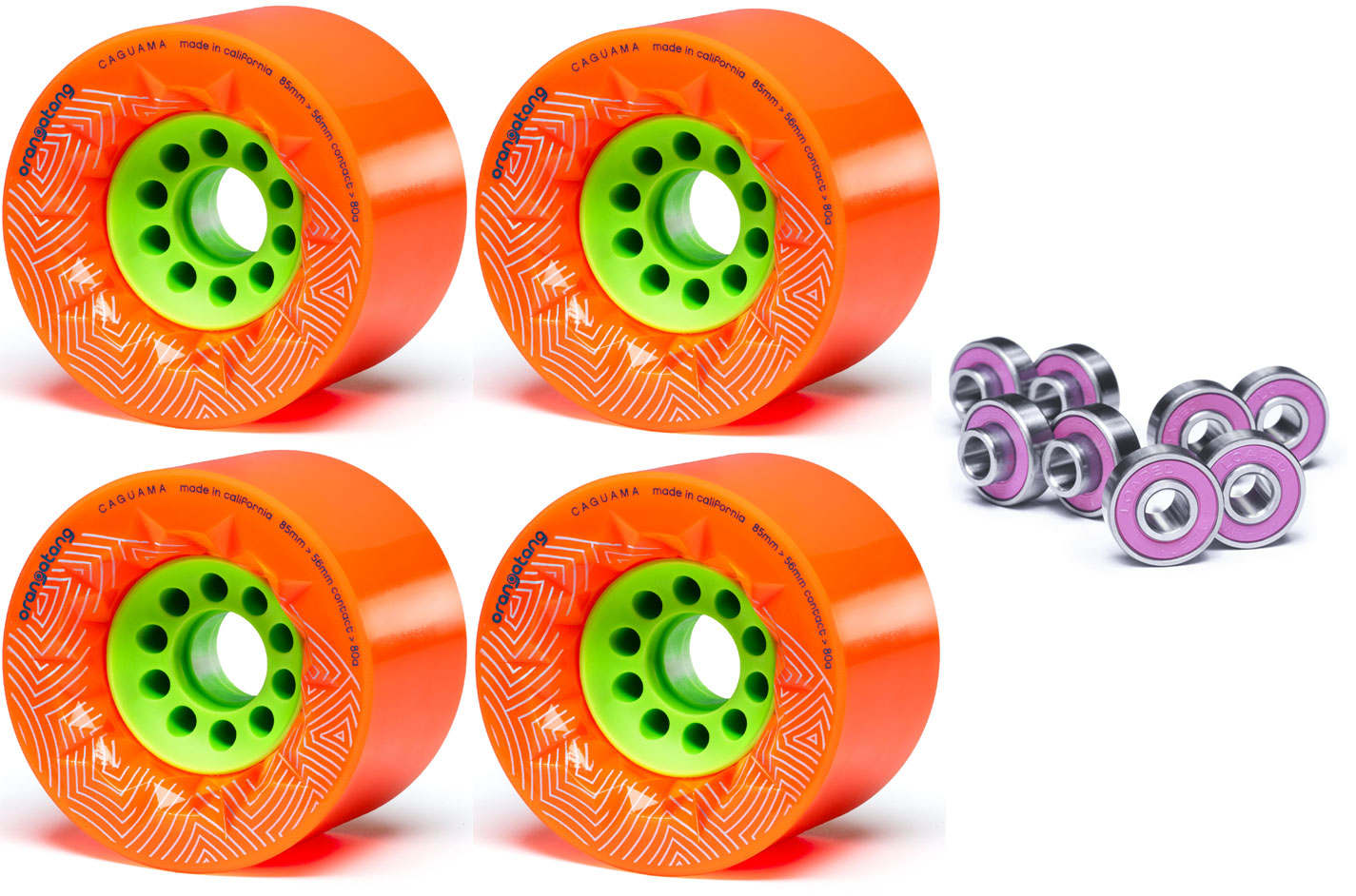Orangatang Longboard Wheels Caguama Orange 85mm 80A with Loaded Jehu V2 Bearings