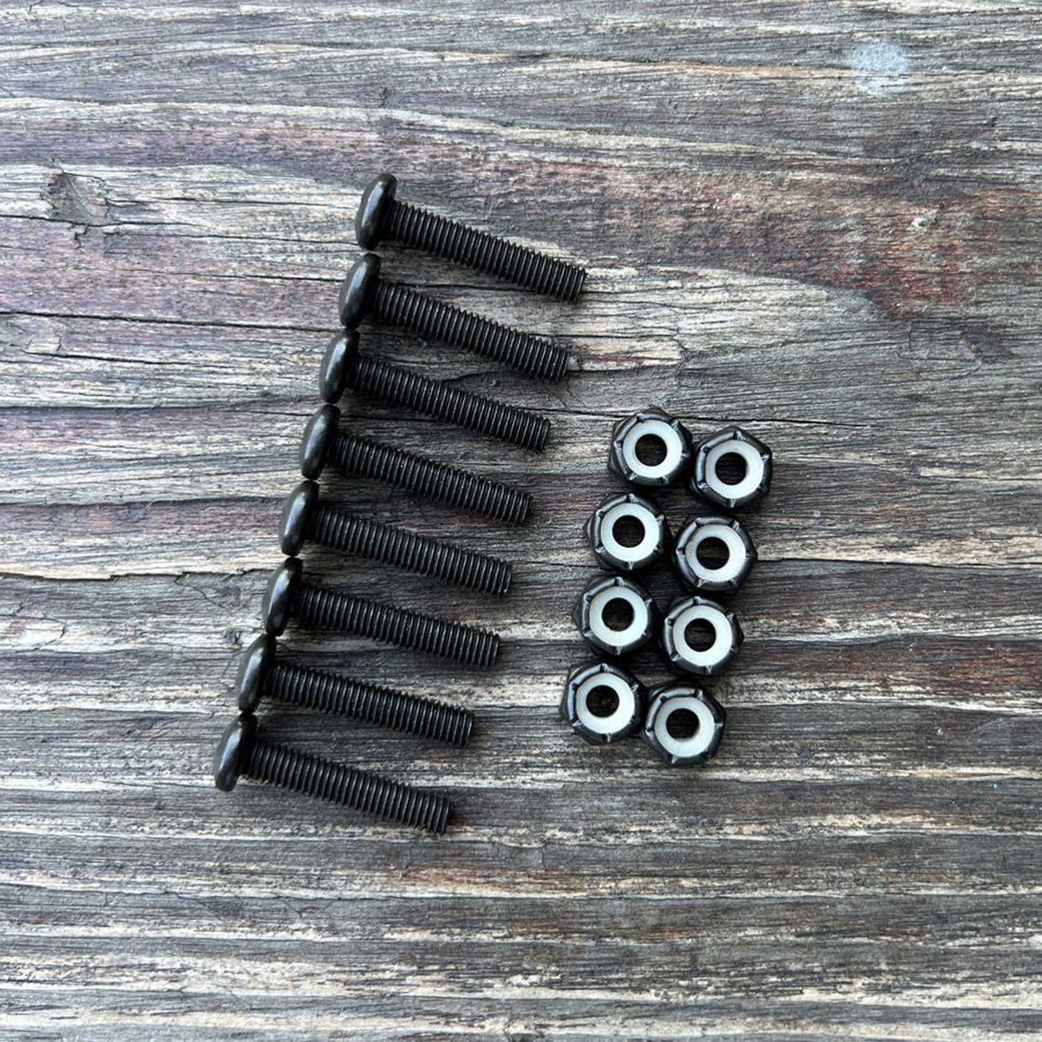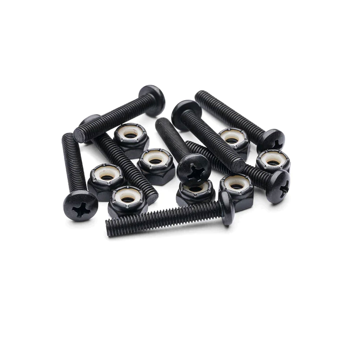 Lock in your trucks with this set of eight 1 1/8" Phillips button head bolts and nuts.Button head to reduce stress on deck or use with drop-through decks 8 Bolts and 8 Nuts Grade 12 Steel