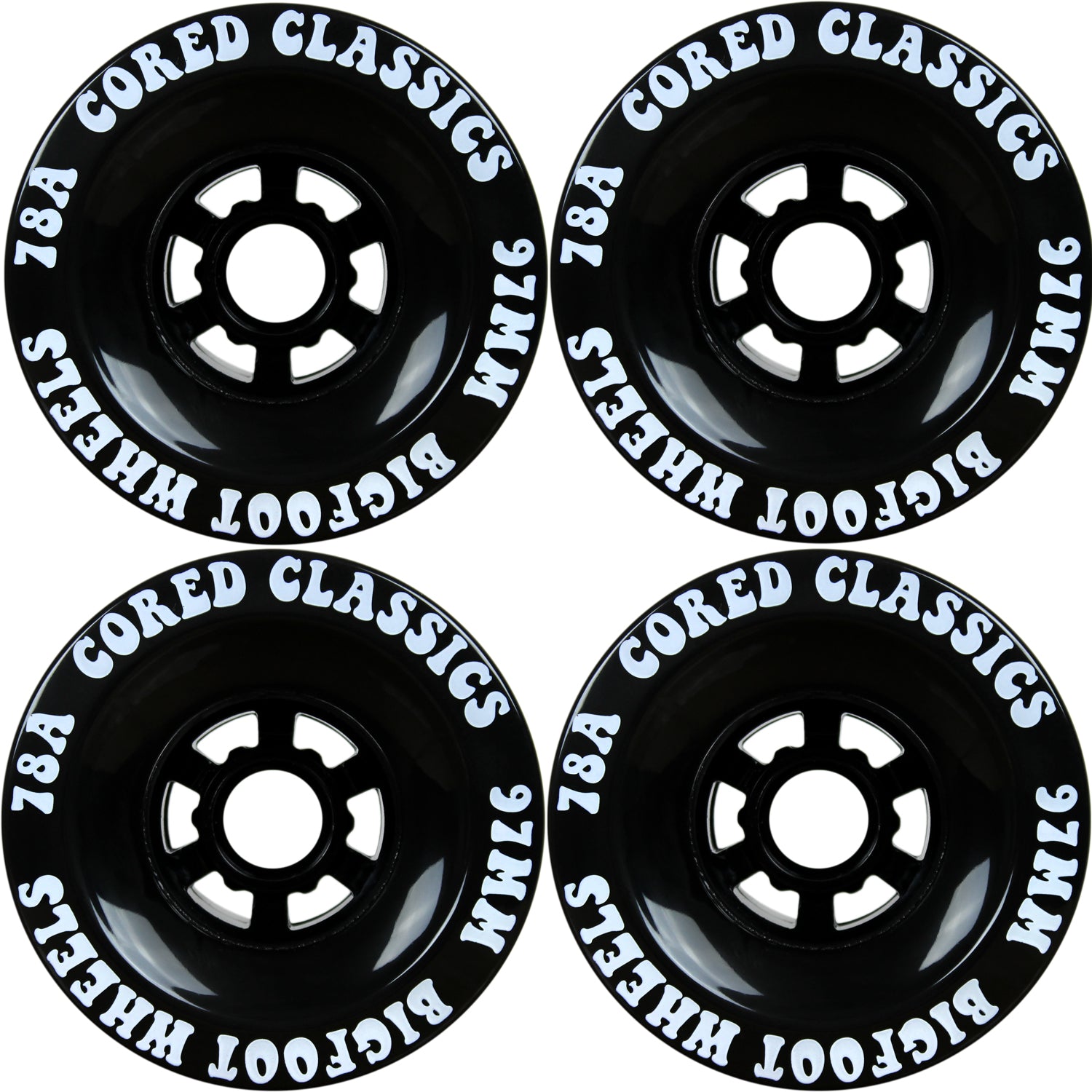 WHEELS: The newest series of Bigfoot is born to the need of skaters who just need bigger wheels. These wheels are especially good for drop trough and drop down shapes when you need extra clearance. Super High Rebound combined with strong spoked cores make the Bigfoot Cored Classics a must for big wheel riders. Center Set Bearing Hub with a 78A Durometer. Measures 97mm x 53mm.