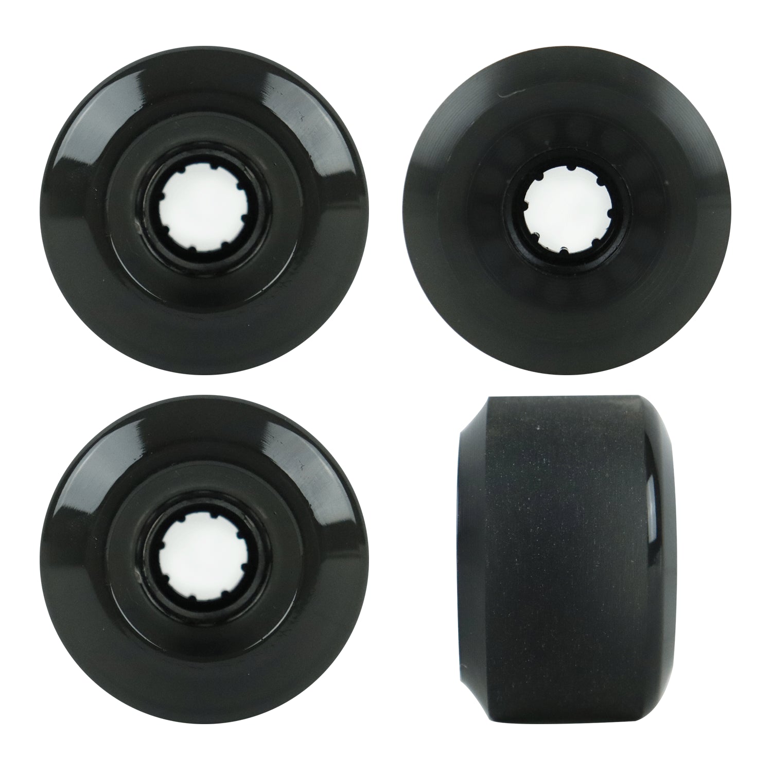 WHEELS: Premium, USA made urethane from a leading wheel supplier in the industry. These sometimes have air-bubbles or slight impurities that do not affect the use of the wheel. These measure 65mm x 42mm with a 78A hardness, rearset bearing seat, and shaved surface.