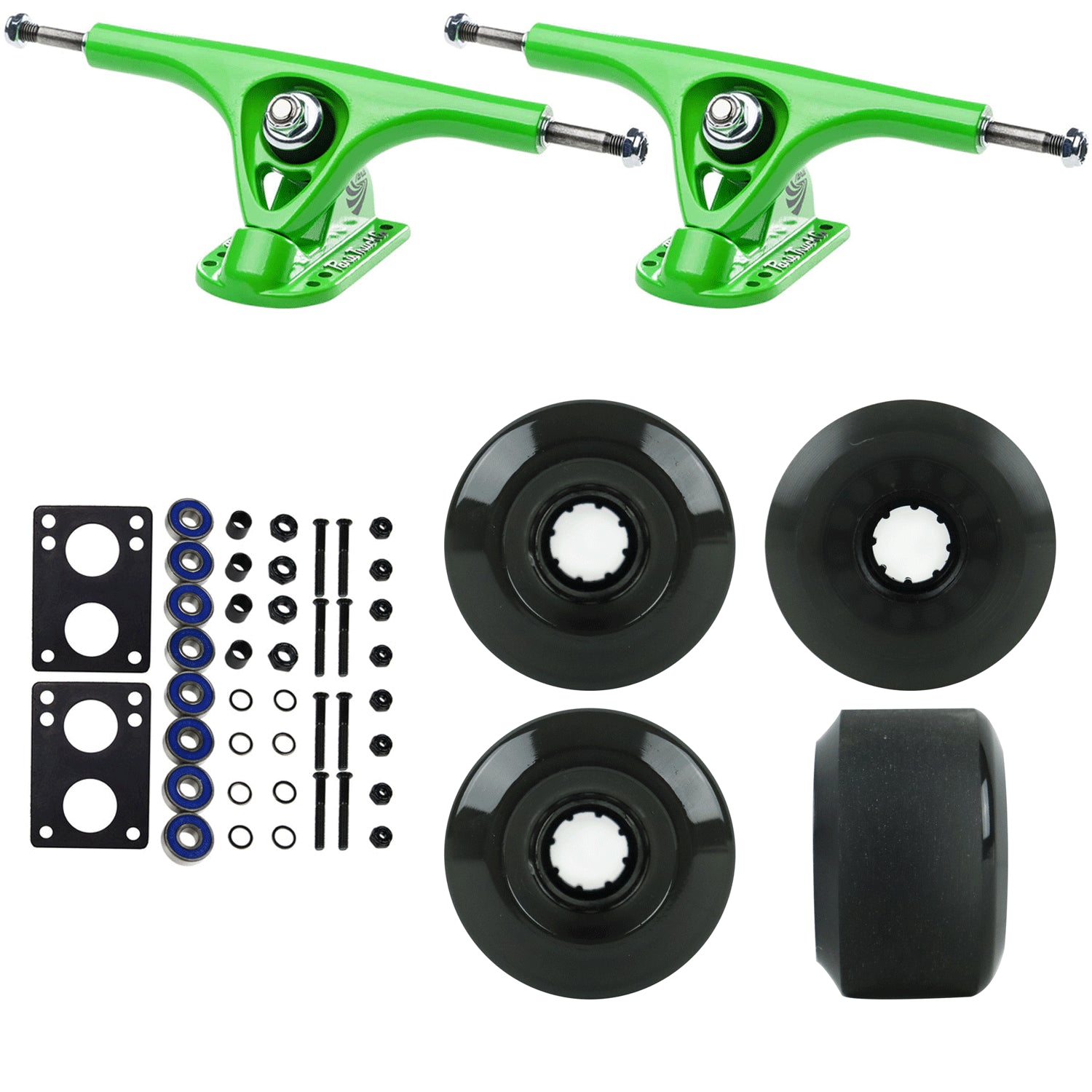 Paris Longboard Trucks, Wheels, Hardware, and Abec 7 Bearings Kit - V2 180 Green + Blank Black 65mm 78A