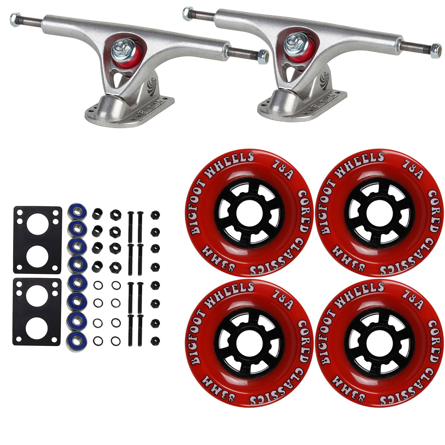 Paris Longboard Trucks, Wheels, Hardware, and Abec 7 Bearings Kit - V2 180 Raw + Bigfoot 83mm 78A Red