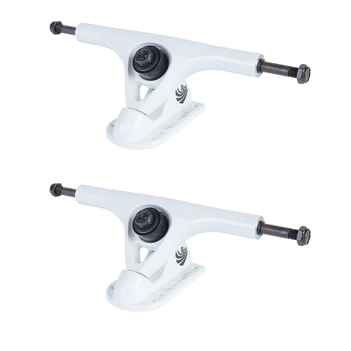 The Paris 180mm 43° Trucks are ideal for any downhill and freeride applications. They combine perfect turning and balance yet maintain a solid and stable ride. The 43s are part beauty, part BEAST! Able to handle anything and everything you can throw at them the 180mm hanger is the perfect go-to size for most decks and compliments all riding styles. The open, unrestrictive bushing seat provides a full tilt, turn that’s perfect for a smooth, carvy setup, paired with the 43° baseplate, you’ll be ready for anything. The 43’s come stock with a flat washer and Paris 90a barrel/barrel bushings which give added support and stability right out of the box. You should ride Paris 180mm 43° Trucks if you want more stability or if you’re riding a board around 9-10″ wide. Features: 356.2 virgin aluminum gravity molded. Secondary heat treatment for added strength & durability. Grade 8 steel axles and branded kingpins. Paris urethane bushings for ultimate response & rebound. 6-hole baseplate.