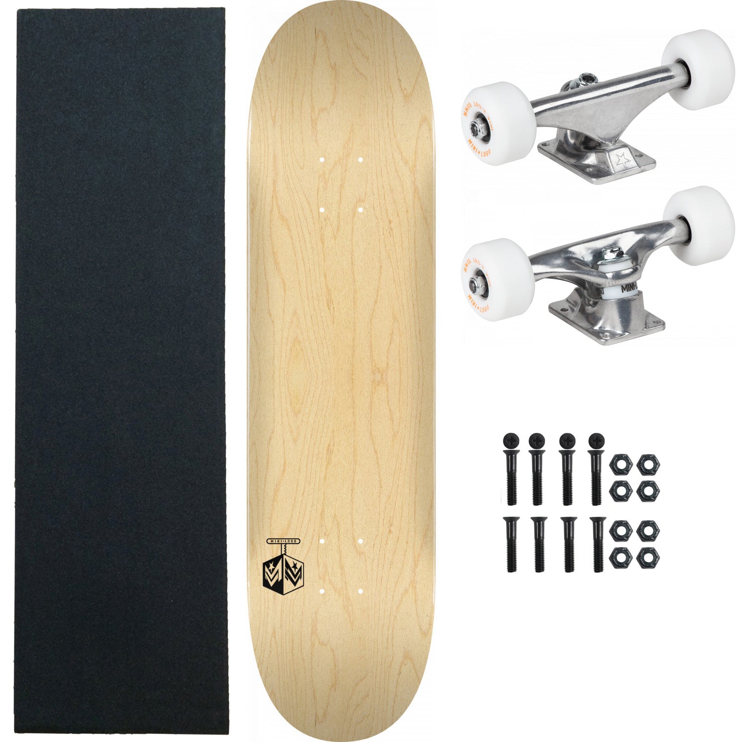 Includes everything you need to build your own Mini Logo complete. Includes a Mini Logo Deck, a 8.38" Mini Logo Truck Assembly complete with 53mm 101A wheels and Mini Logo Bearings, 1" Hardware, and a sheet of Black Diamond Griptape. Handmade with the finest materials, Mini Logo is the industry leader of high-performance price point decks. Mini Logo utilizes 35 years of deck-building experience to deliver the best sizes, shapes, and pop at an affordable price. Seven plies of rock hard maple. Laminated with Skate One's proprietary, low-stress AirLam presses. Proven construction and concave. Measures 8.25" x 31.95".