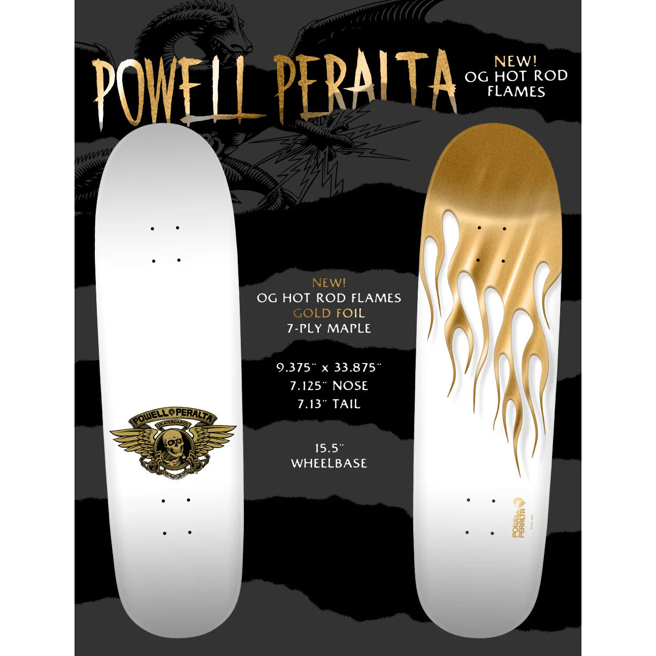 Powell Peralta Skateboard Complete Hot Rod Flames White/Gold Old School Reissue