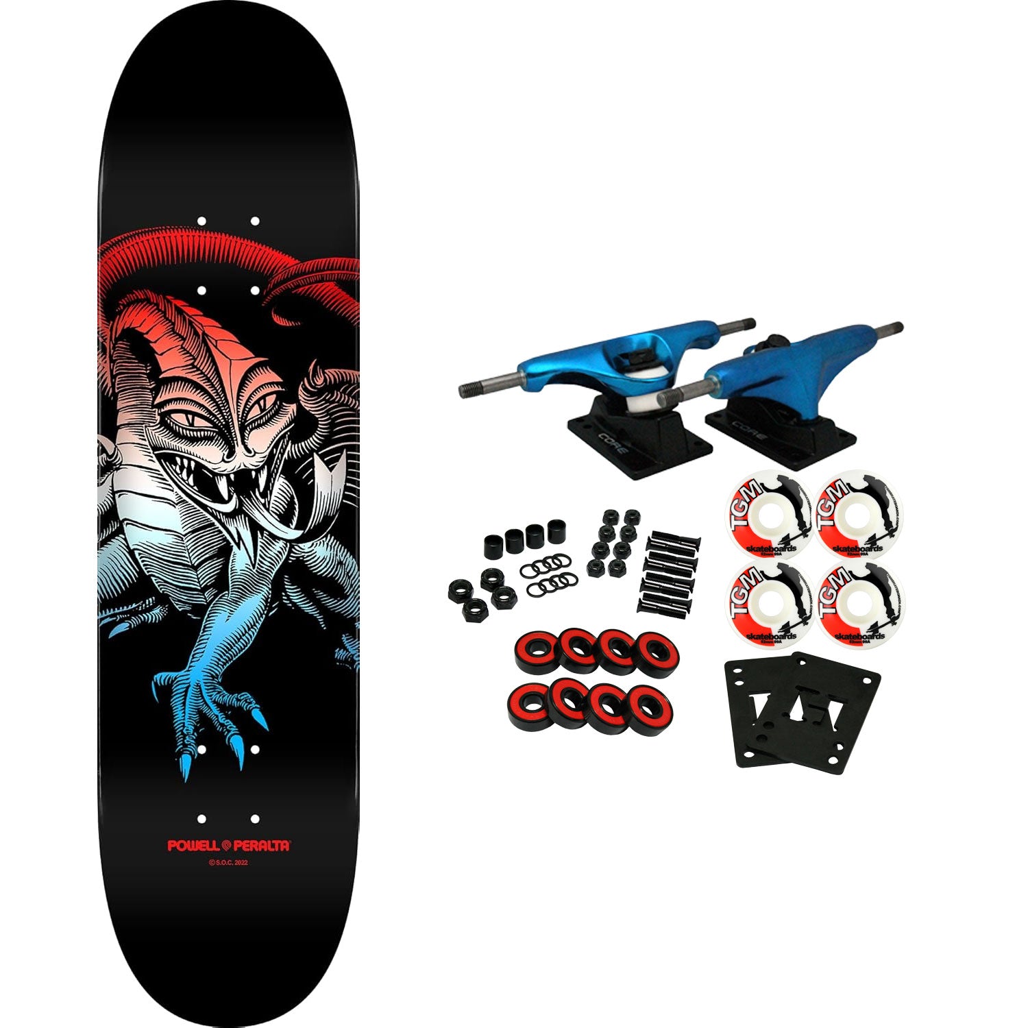 Powell Peralta popsicles are made using Skate One AirLam presses with maple and glue to match engineering specifications. They are light, thin, have excellent torsional rigidity, and crisp pop. Great for beginners to pro level skating at an awesome price. Works well in the streets, skateparks, pools, freestyle, bombing hills or just pushing to the store. Measures 8.25" x 31.95" with a 14.25" wheelbase. Comes with Core trucks, 52mm TGM logo wheels, Amp abec 5 bearings, Black Diamond Griptape, risers, and hardware. Core trucks are light weight and feature heavy duty aluminum with grade 8 steel kingpins and axles, as well as USA made bushings and pivot cups. 52mm 99A are the perfect wheels for both street and park skating. Like the name states, Amp bearings are stimulants for your wheels! Light synthetic oil, Delrin Crowns, and Rubber Serviceable Shields are a few of the things that makes these bearings one of the best Abec 5 rated bearings on the market. Arrives un-assembled which allows for customization and a feeling of accomplishment. Skaters love building their boards! Easy to assemble!