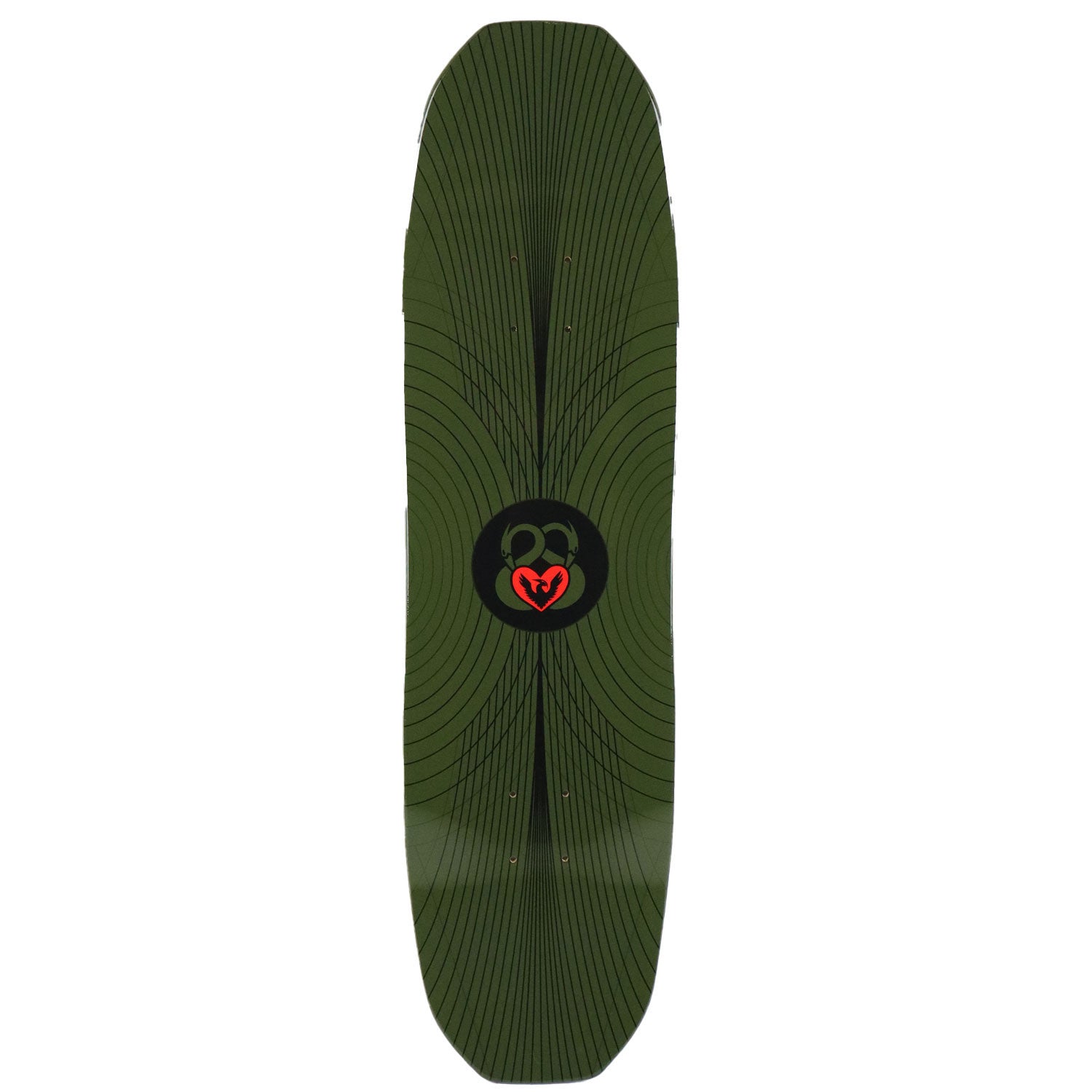 While the Vajra shape was a challenge to develop, this one came easily to Andy. Reminiscent of the original Heron shape but smaller and symmetrical, it measures 8.25" at the waist, just under 8.5" at the widest, and has a 14.25" wheelbase. The square edge and slightly curved nose and tail deliver solid, stable pop, while the K26 concave and inner cuts create a front-foot pocket that makes Tre Flips and Varial Heelflips easier to flick. With its streamlined shape, pop, and responsive feel, the Hydrant shape is solid gold.