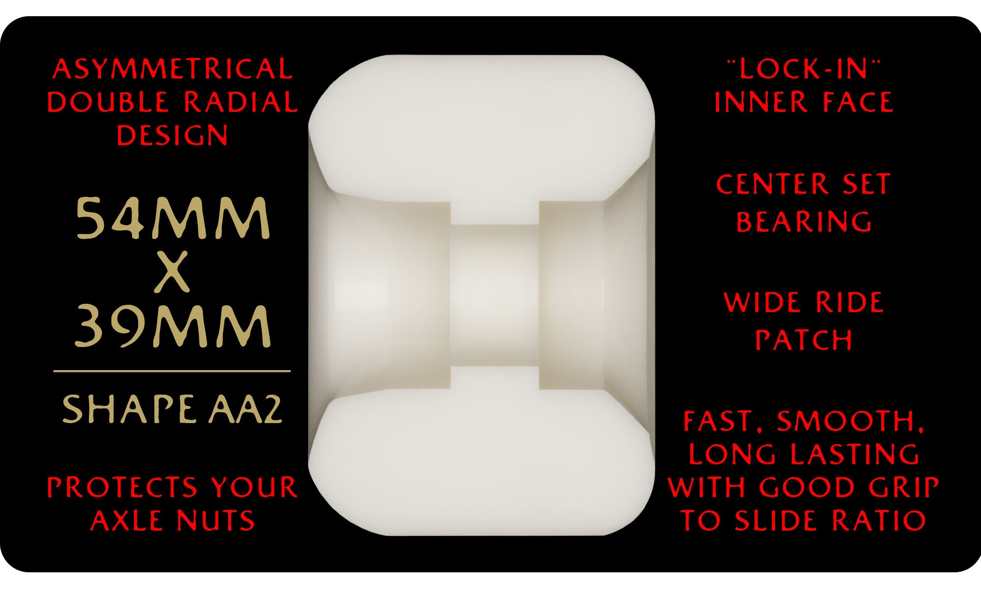 ABOUT THE AA2 NANO RAT SHAPE: Asymmetrical double radial design. Protects your axle nuts. "Lock-in" inner face. Center set bearing. Wide ride patch.