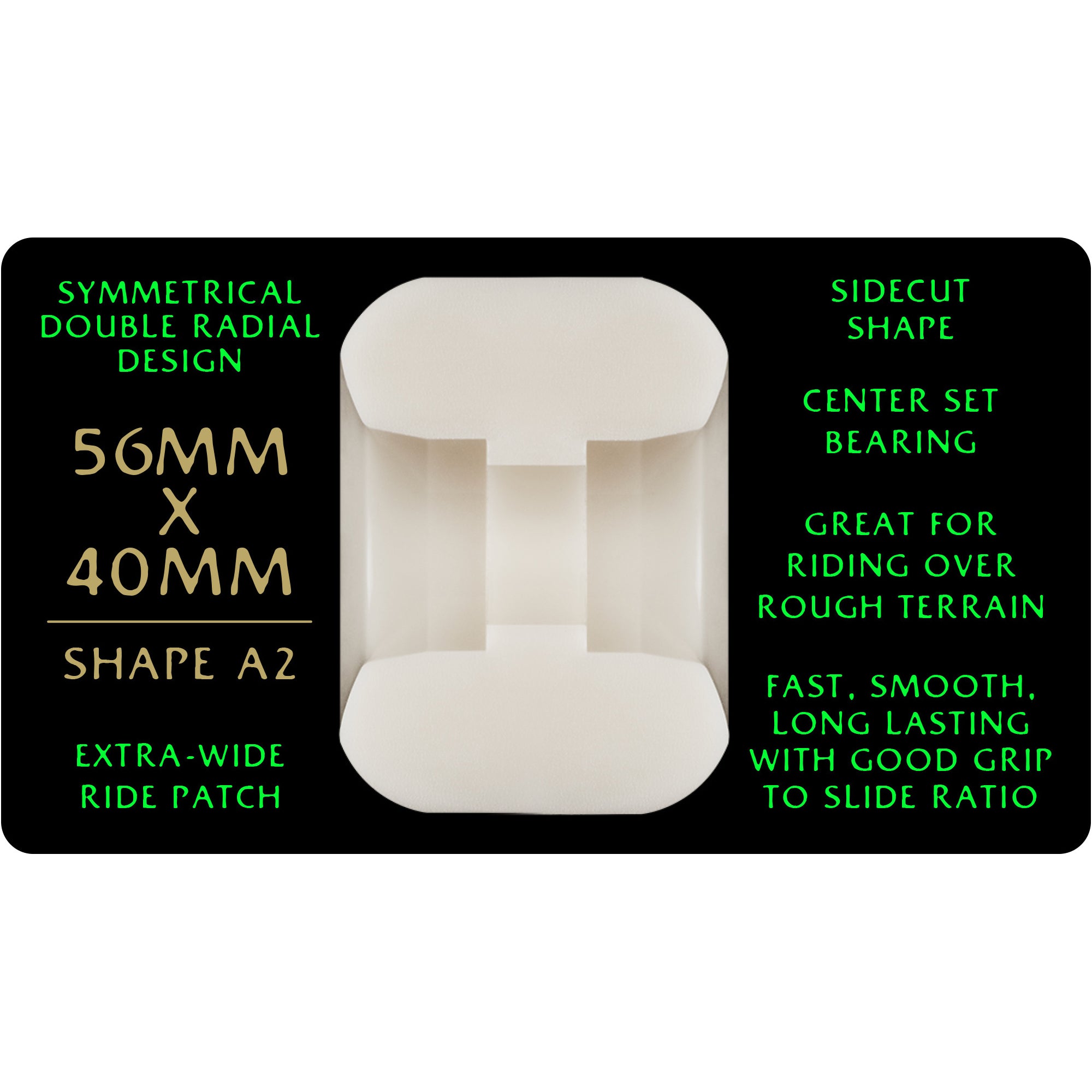 ABOUT THE A2 SHAPE: Symmetrical shape. Sidecut shape. Extra wide ride patch.
