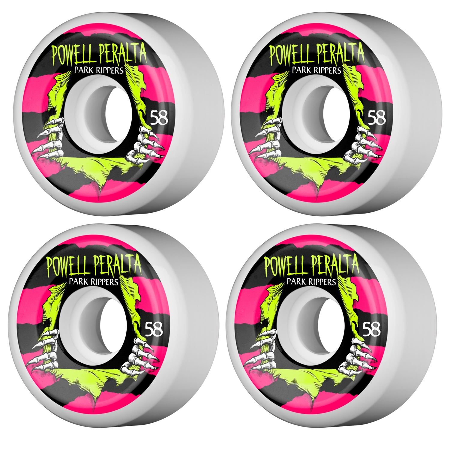 The Park Ripper II wheels measure 58mm x 32mm with a hardness of 84B (104A) and a smooth surface. Powell-Peralta Park Formula is unsurpassed for skateparks and ramps, providing extra grip on smooth surfaces and twice the life of ordinary wheels, no matter where you ride them.