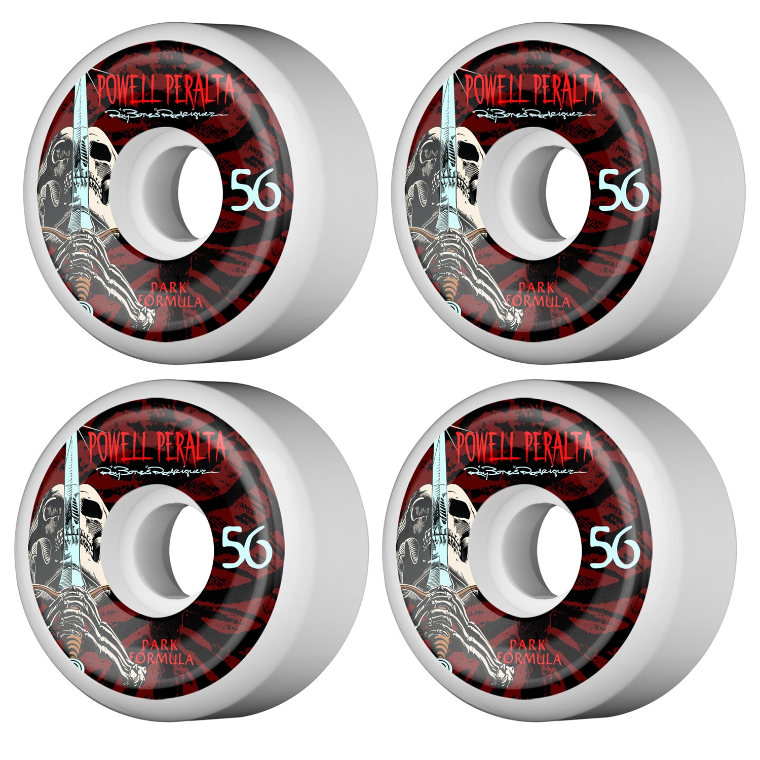 The Ray Rodriguez Skull and Sword wheels measure 56mm x 32mm with a hardness of 84B (104A) and a smooth surface. Powell-Peralta Park Formula is unsurpassed for skateparks and ramps, providing extra grip on smooth surfaces and twice the life of ordinary wheels, no matter where you ride them.