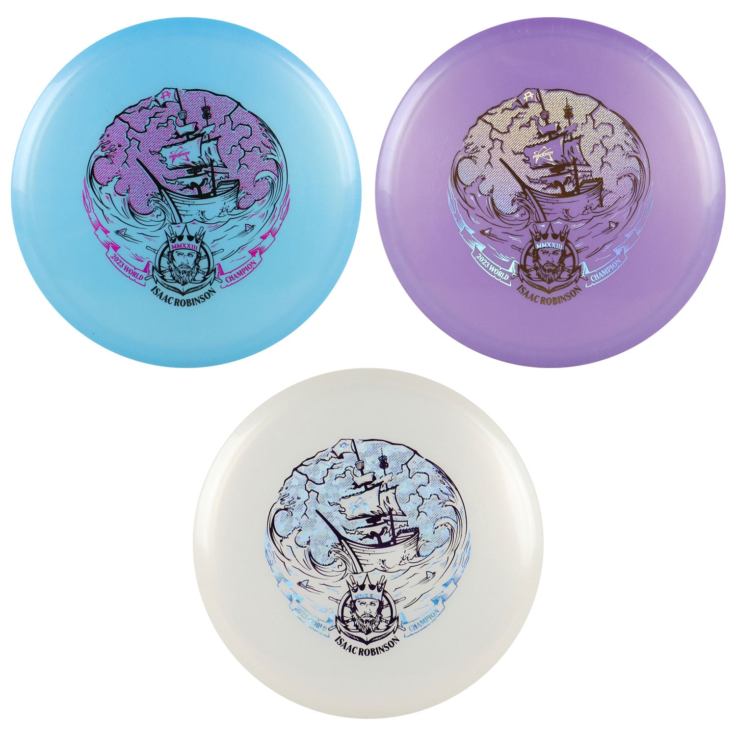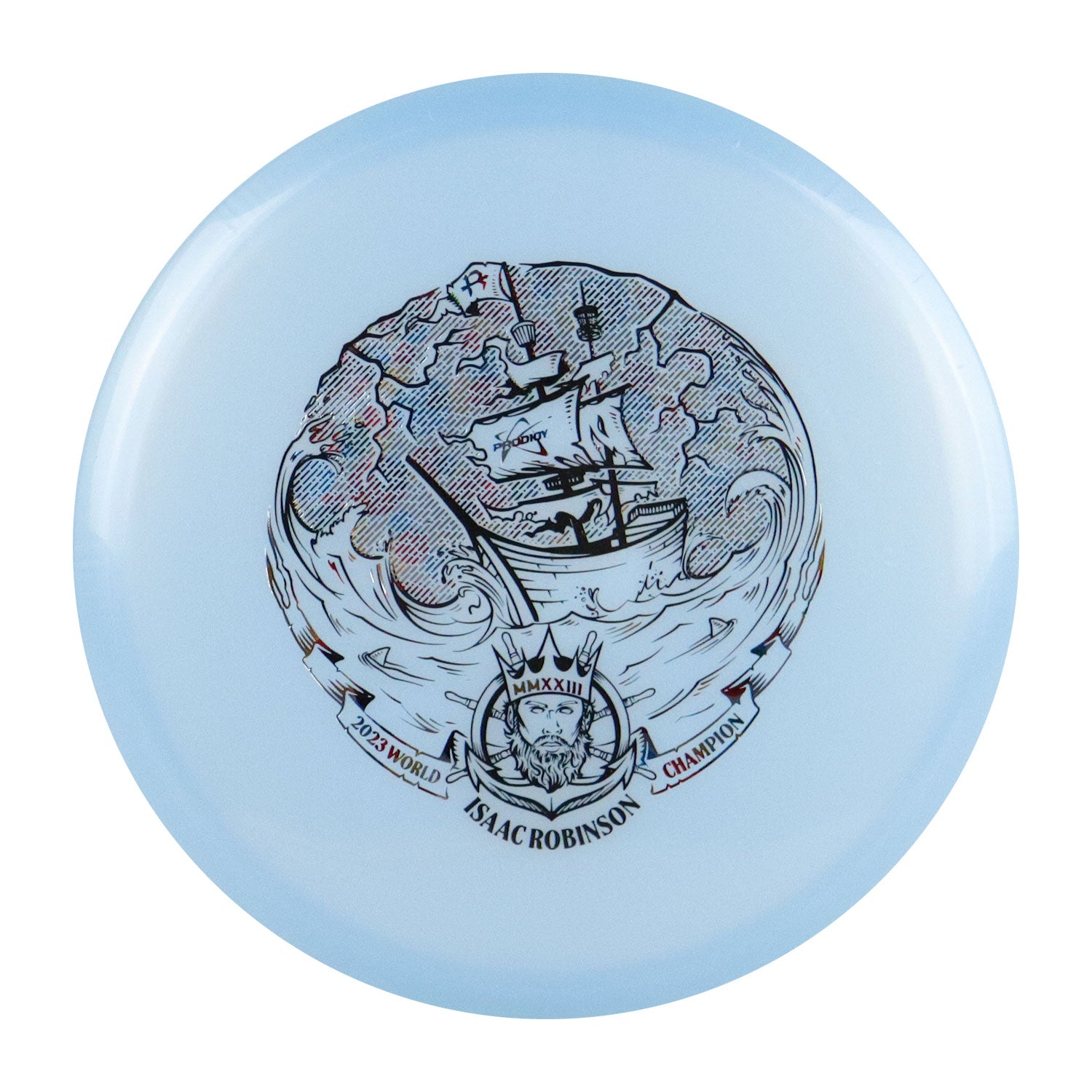 Isaac Robinson captured his second Major title of the season and first career World Championship with a five-round victory at the 2023 PDGA Professional Disc Golf World Championship, played at Smugglers’ Notch Resort in Jeffersonville, Vermont. To commemorate the historic achievement, you can pick up a special edition Prodigy Collabs Series Isaac Robinson Archive midrange in 500 plastic sporting a brand new Smuggler’s Pursuit stamp.