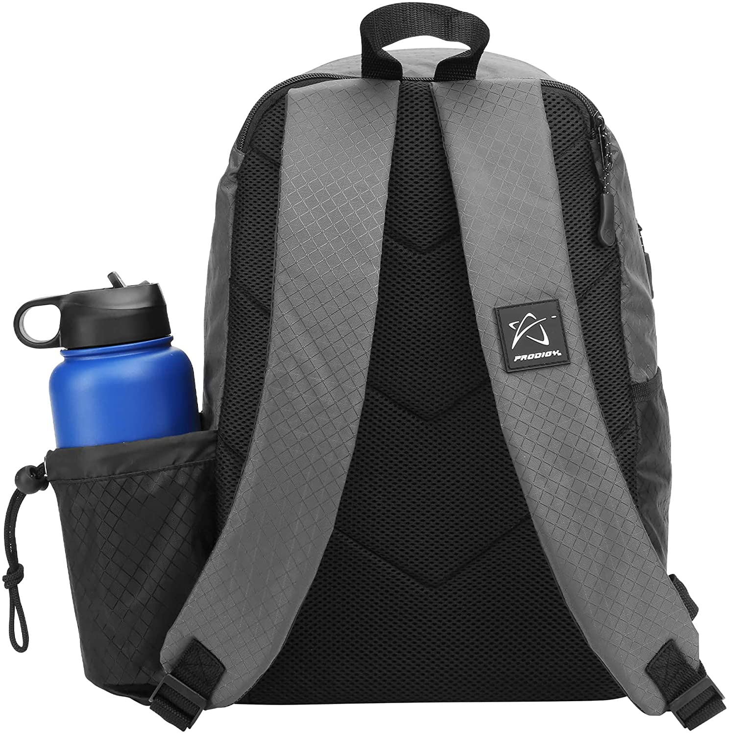 The Prodigy BP-4 offers another compact option in our bag lineup at our lowest price point yet. The BP-4 now features a lightweight, durable Nylon Ripstop Fabric which makes the bag scratch, tear, and water resistant. With the new material also comes a brand new color array with five different options. It holds 16-18 discs in the main compartment with an optional divider. The putter pocket holds an additional two putters. For storage, the BP-4 has a velcro side pocket with room for valuables and small items like towels, and it has an adjustable water bottle holder to easily fit a 32-ounce bottle. The BP-4 also makes a great bag on the go for days spent off the course.