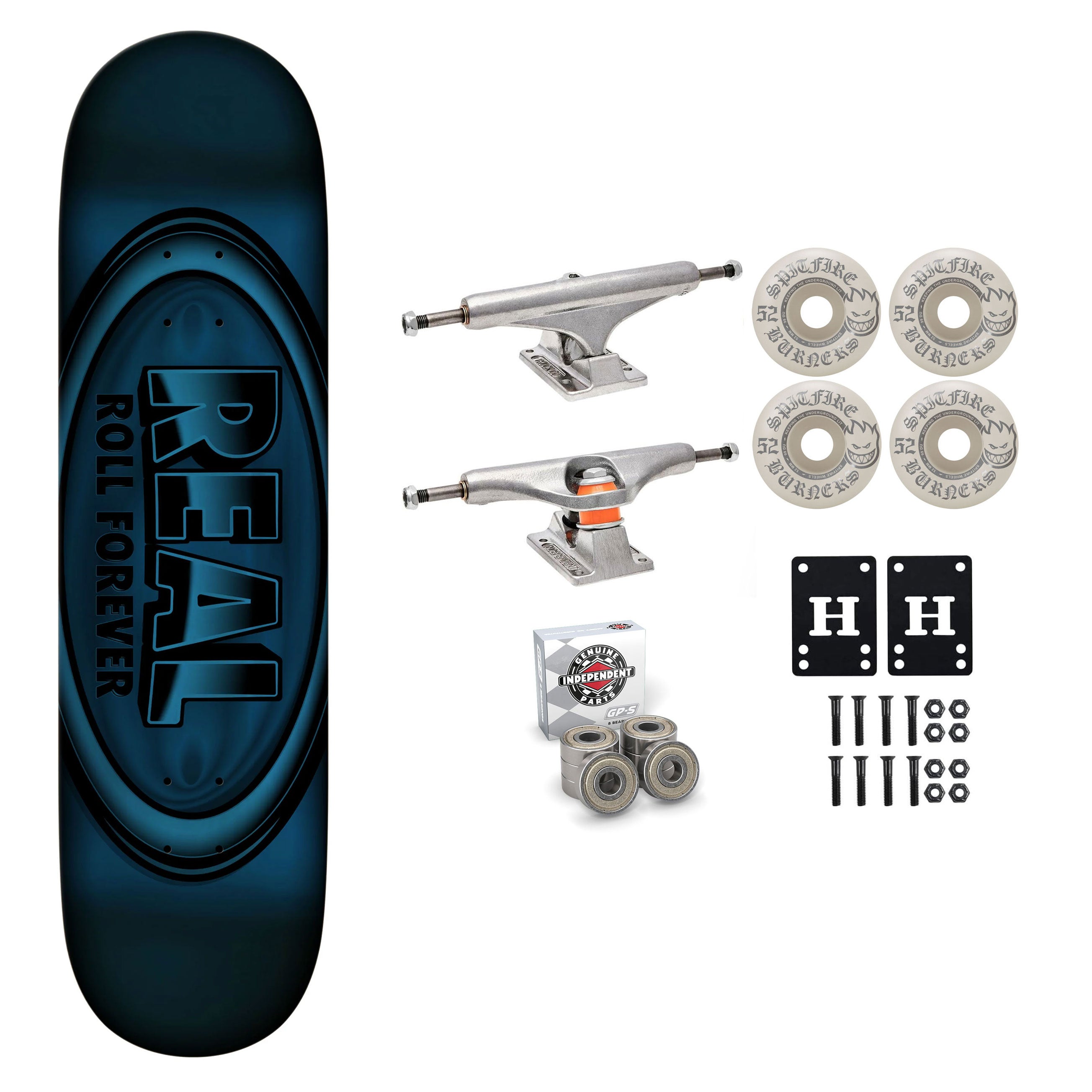 Includes hand selected components to make a premium complete that even the pros would be proud of. Top tier parts from leaders in the industry. Includes a Real Deck, Independent Trucks, Spitfire Wheels, Independent GP-S Bearings, Black Diamond Griptape, 1" Hardware and Risers.