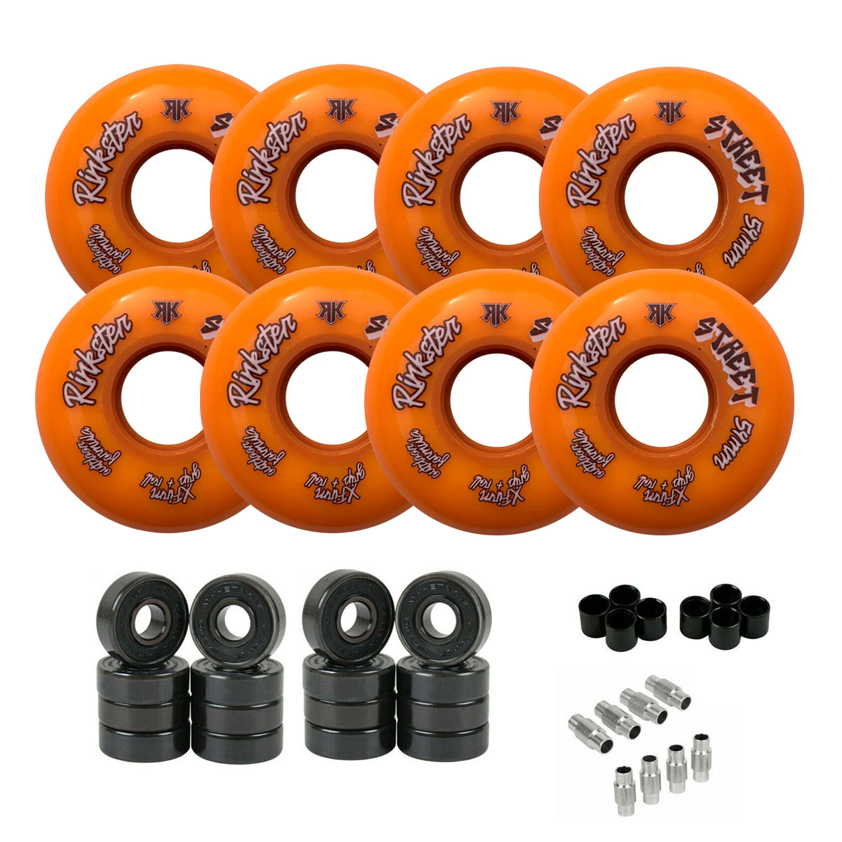 Includes: 8 Wheels, 16 Hybrid Ceramic Bearings, 8 8mm Floating Spacers, and 8 6mm Stepped Spacers (You only need 1 set of spacers depending on your skates, we include both as a courtesy). Please take the time to ensure the wheel specifications on your skates. Many manufacturers use different wheel configurations, but almost all use these 5 basic sizes: 59mm, 68mm, 72mm, 76mm, and 80mm. Measure your current wheels, or check your skate specs to ensure a smooth installation!